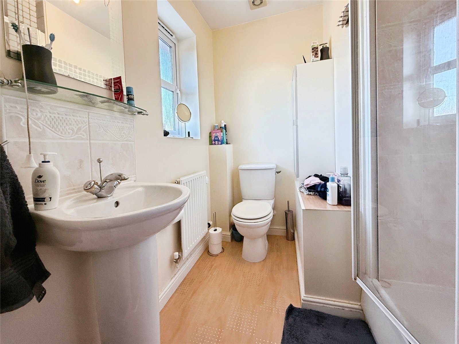 To the first floor, the landing leads to four well-sized bedrooms, offering flexibility for families, guests or those working from home. The main bedroom benefits from its own en-suite shower room, while the remaining bedrooms are served by a family bathroom fitted with a modern white suite.