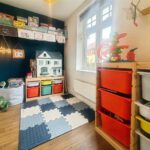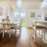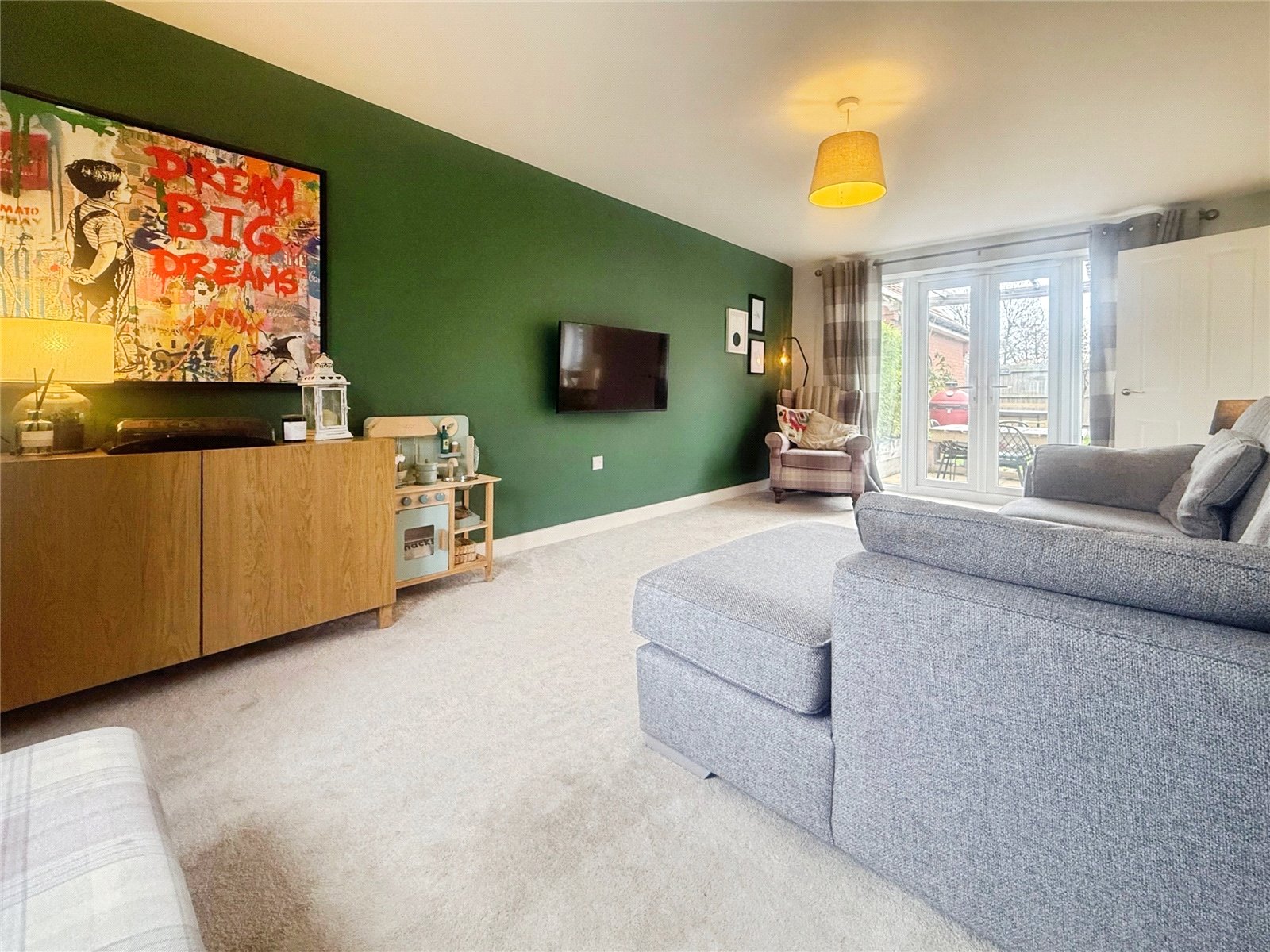 The ground floor features an expansive living room stretching the full depth of the home, allowing for multiple seating areas and excellent natural light. The large open-plan kitchen/diner provides a superb social hub, complete with modern cabinetry, breakfast bar seating, integrated appliances and French doors opening directly onto the garden. A separate utility room and WC add convenience, while the additional play room/home office offers flexible use depending on family needs.