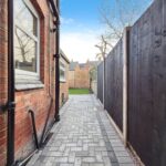 To the rear is a recently landscaped garden, offering a low-maintenance outdoor space with a combination of paved and lawned areas, enclosed by boundary walls and fencing.
