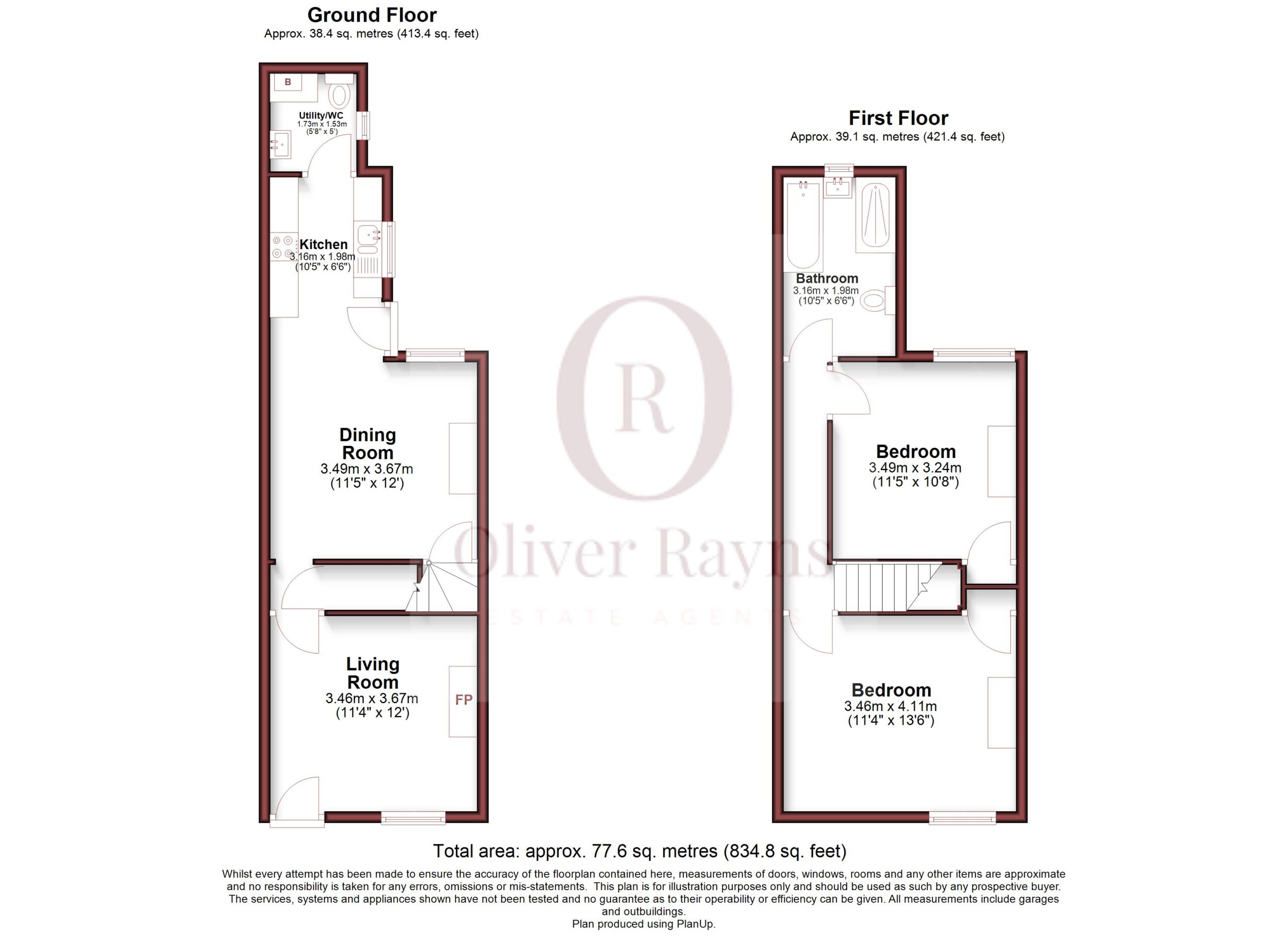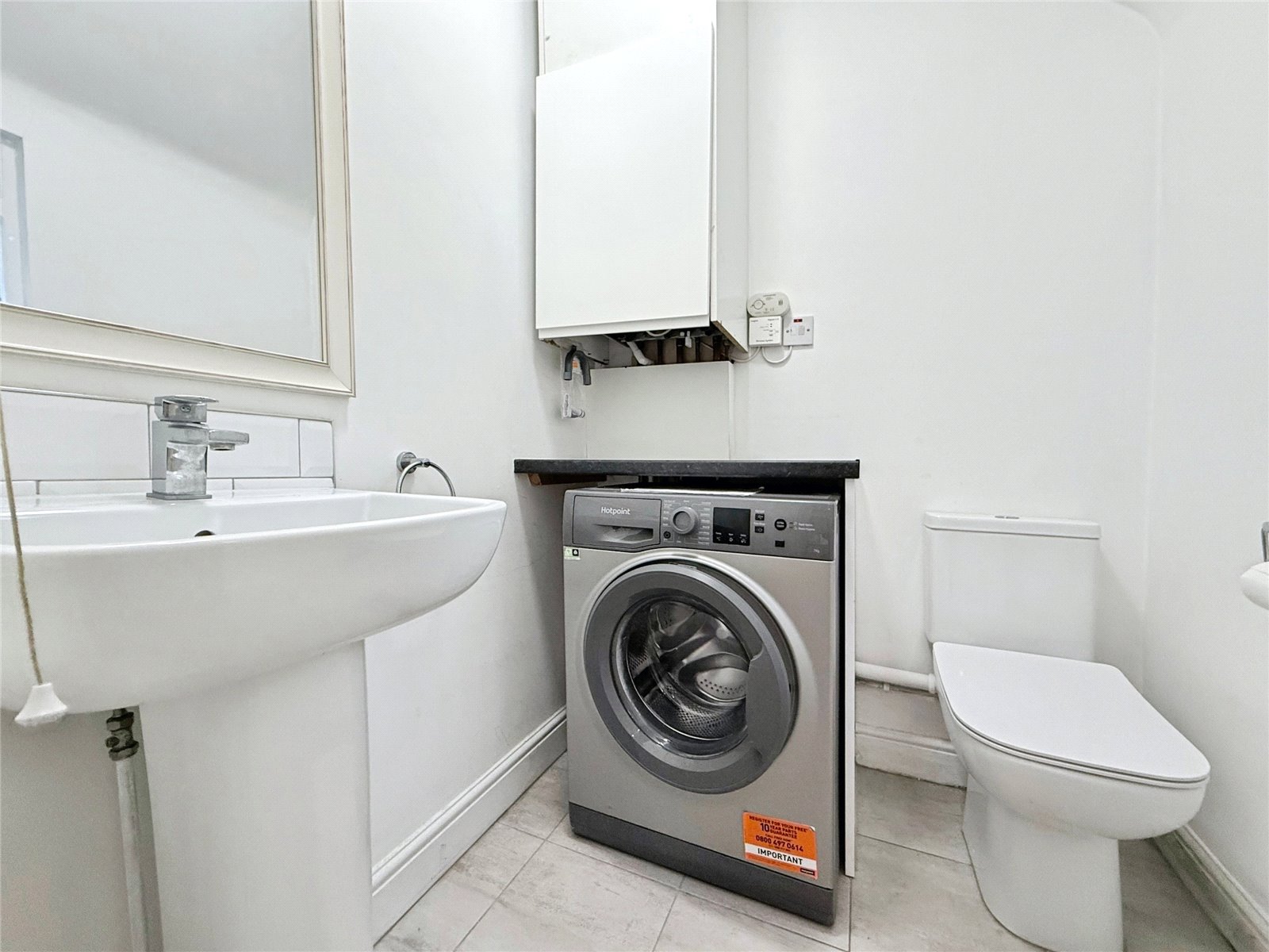 The entrance gives access to the bright and airy front reception room which flows into the rear reception room, both with feature fireplaces and staircase rising to the first floor. The open plan kitchen offers a range of white gloss wall and base units with a rolled edge work surface encompassing a dishwasher, full size fridge freezer, single oven, four ring electric hob and sink/drainer unit. There is a door off to the utility room which has a washing machine, wash hand basin and toilet.