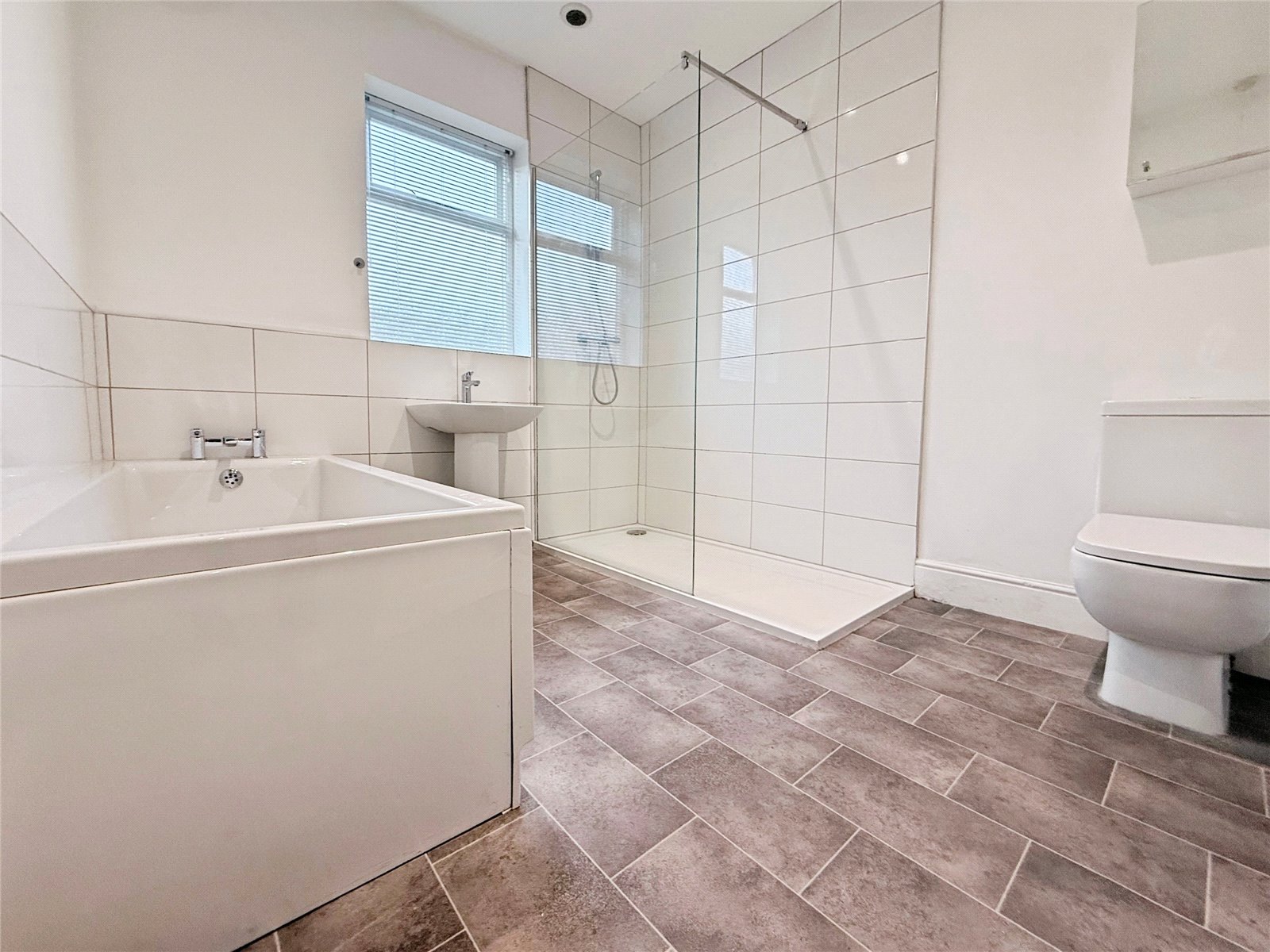 To the first floor are two double bedrooms with original fireplaces and built in wardrobes/cupboard. Both bedrooms have stripped wooden floors. There is a spacious modern bathroom with a bathroom suite comprising of a walk in shower, separate bath, toilet and wash hand basin.