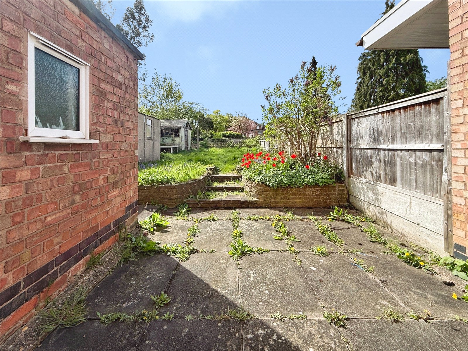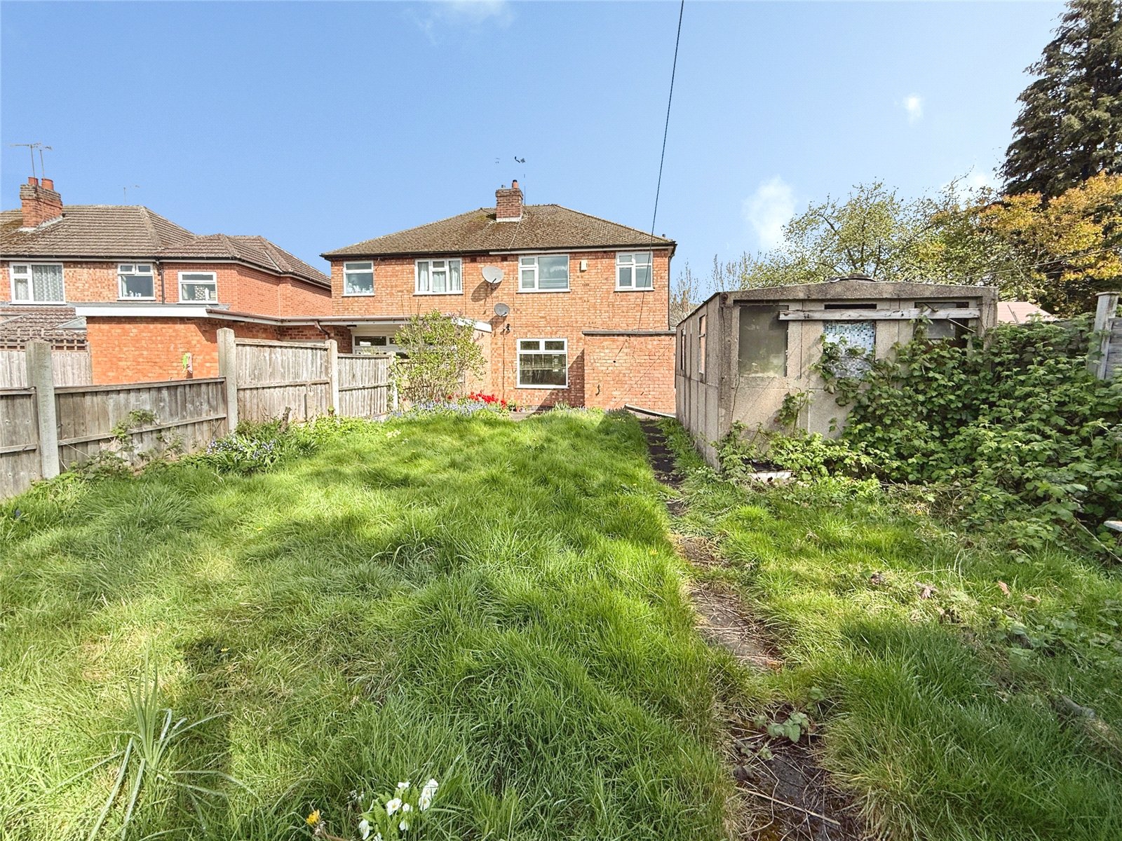 Externally, the property benefits from a driveway providing off-road parking and access to a detached garage, while the rear garden offers a particularly generous plot brimming with potential. Currently laid to lawn with established borders, the space presents an exciting opportunity for landscaping and transformation, whether that be the creation of a stylish patio and entertaining area, a family-friendly garden, or even the addition of a garden office or extension, subject to the necessary consents.