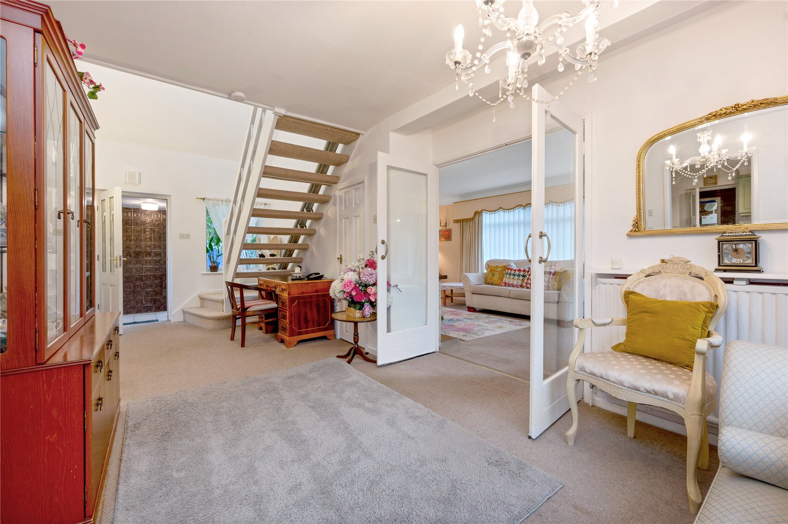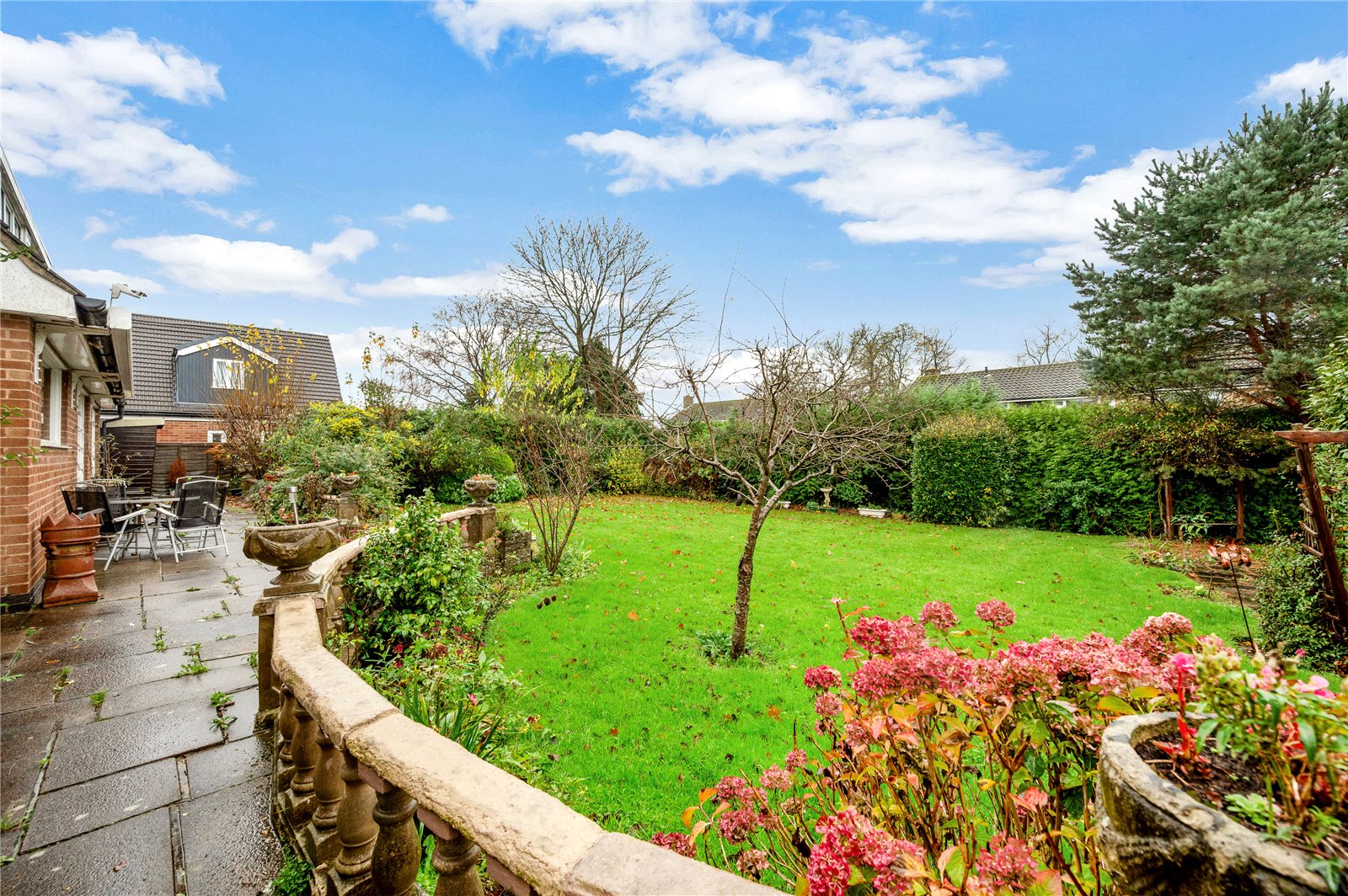 Wrapped in mature gardens and surrounded by greenery, the plot is exceptional. The rear garden stretches out beautifully—wide, private and wonderfully open—creating an inspirational backdrop for anyone considering redesigning the existing layout or dramatically extending the home, subject to planning. With its broad footprint, versatile arrangement over two floors and direct access from the house into the double garage, the potential to transform this into a substantially larger, contemporary family home is significant.