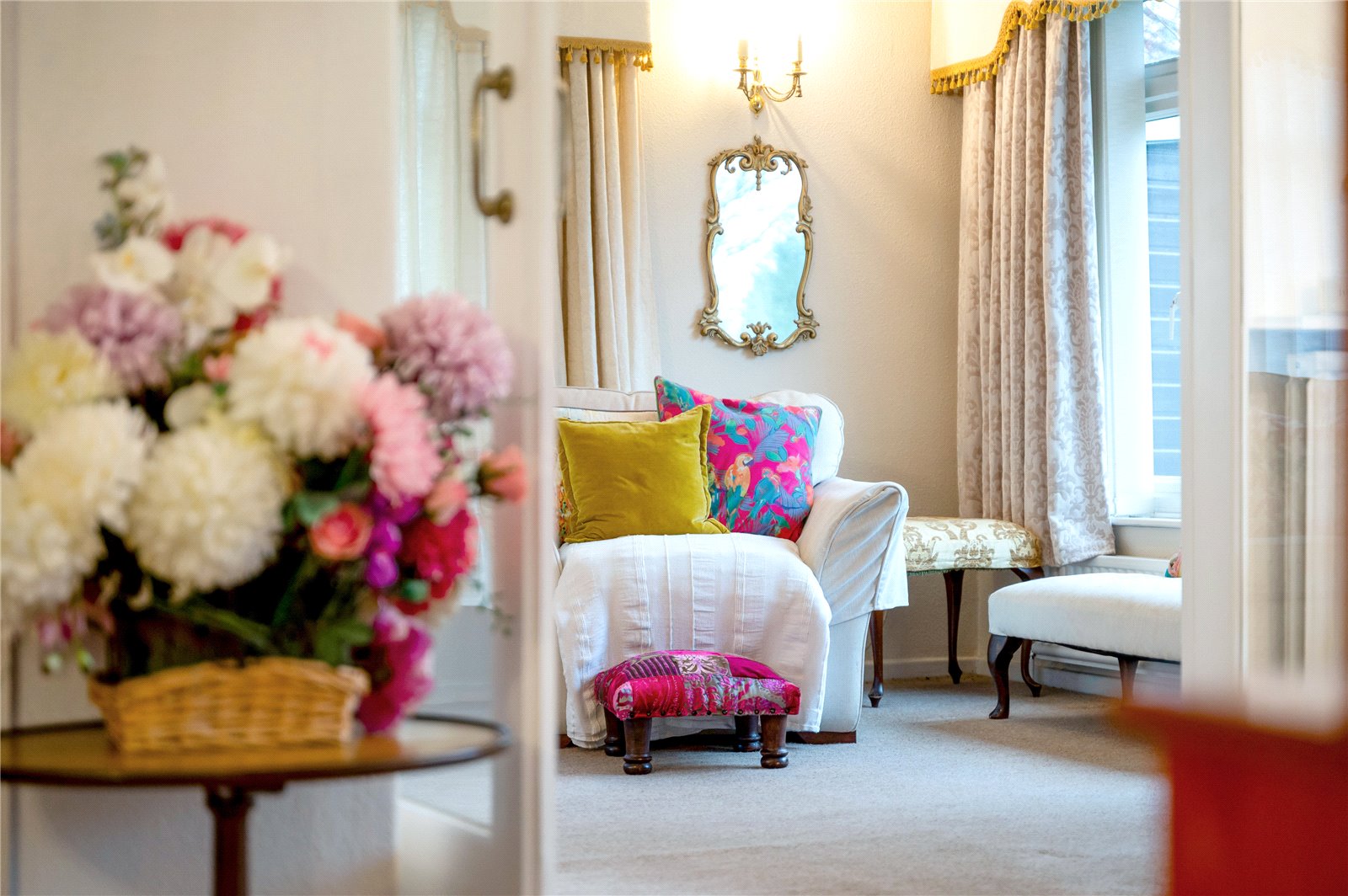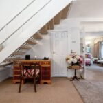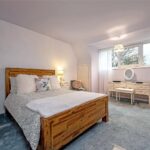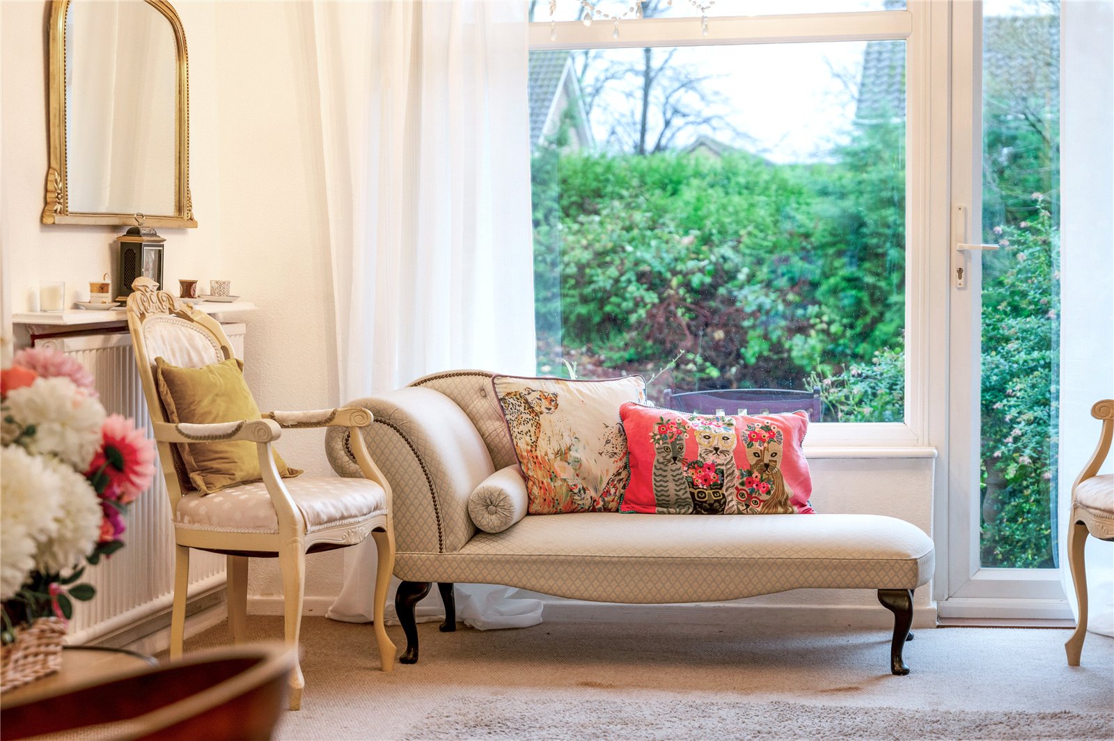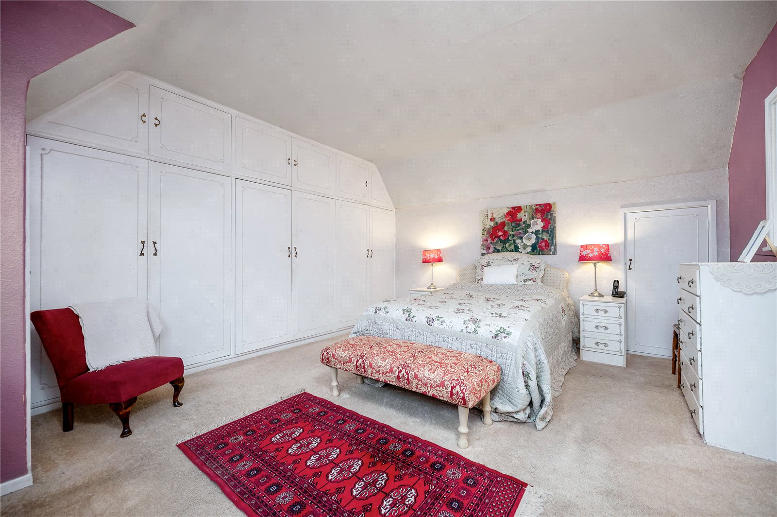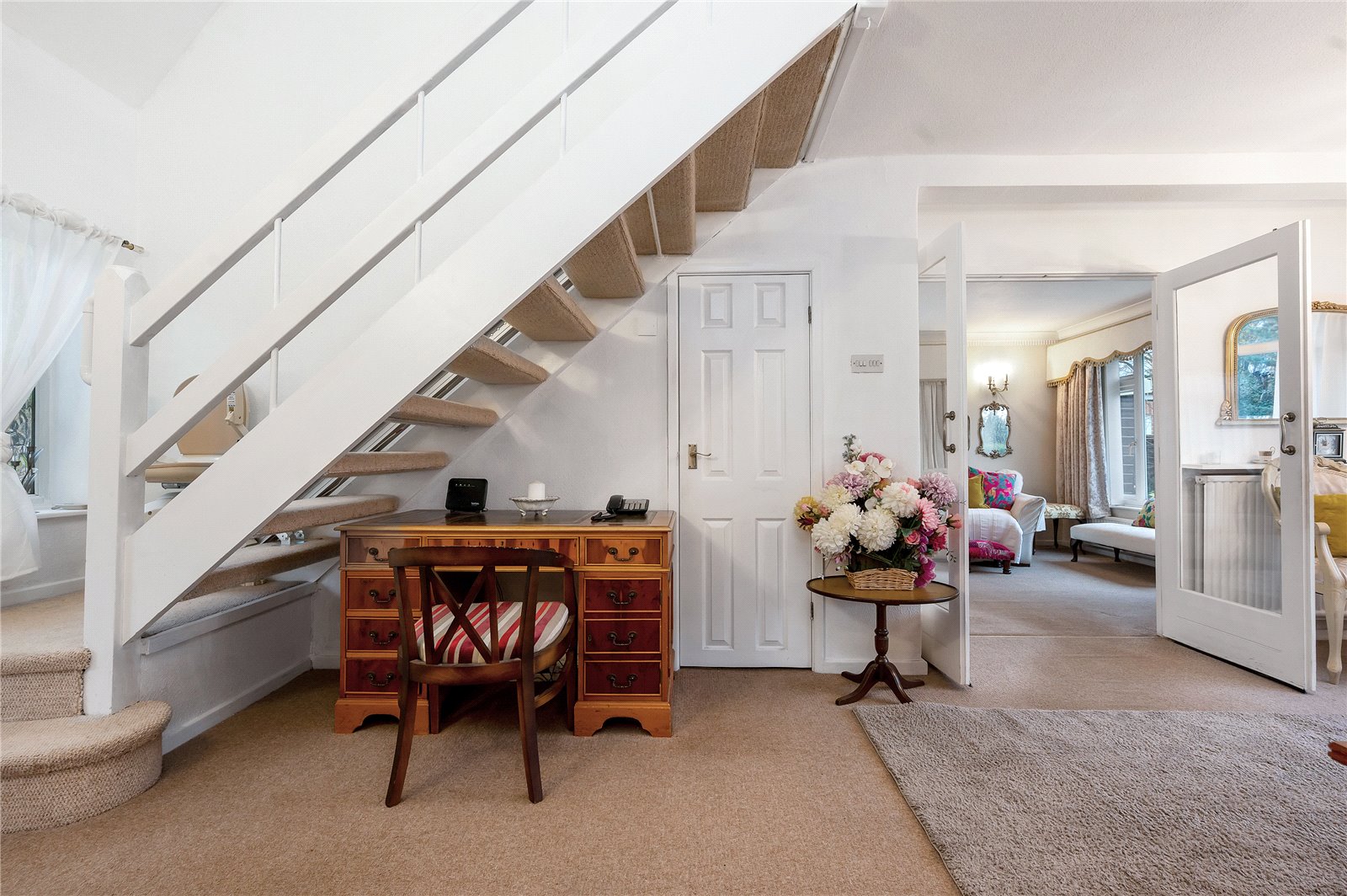 Two further double bedrooms and a family bathroom sit on the first floor, each enjoying elevated views over the gardens, making the overall footprint ideal for families or those wanting flexible living arrangements.