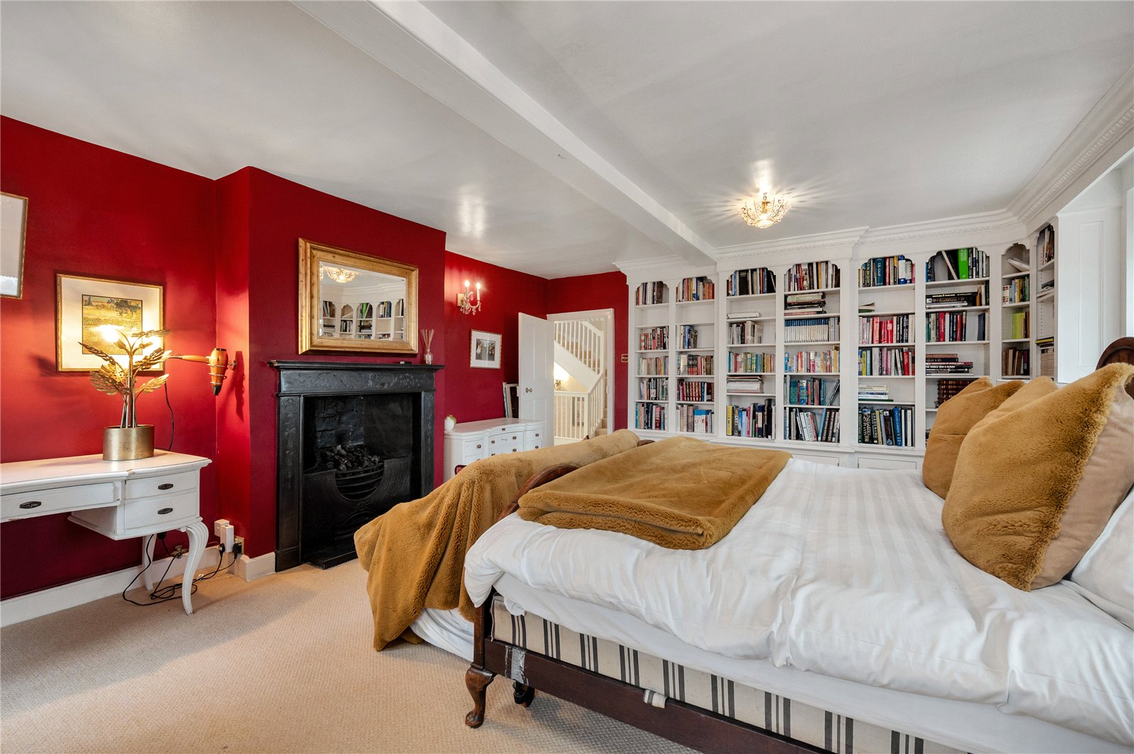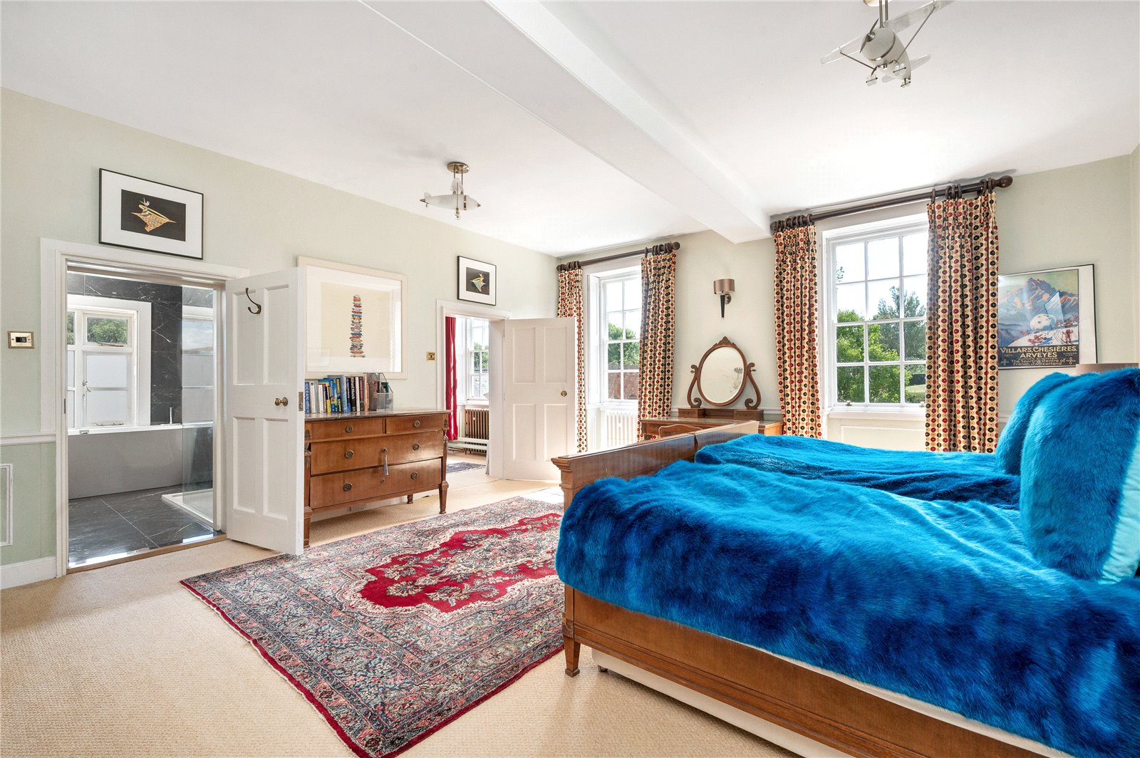 Mainly dating from the 18th century, the house is built in red brick beneath a slate roof and displays the balanced proportions, symmetry and clarity of form characteristic of the Georgian period. The internal layout is arranged across cellar, ground, first and second floors, with generous ceiling heights, large sash windows and well-scaled rooms that allow natural light to move easily through the building.