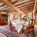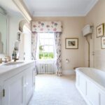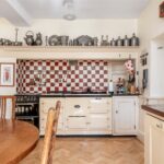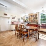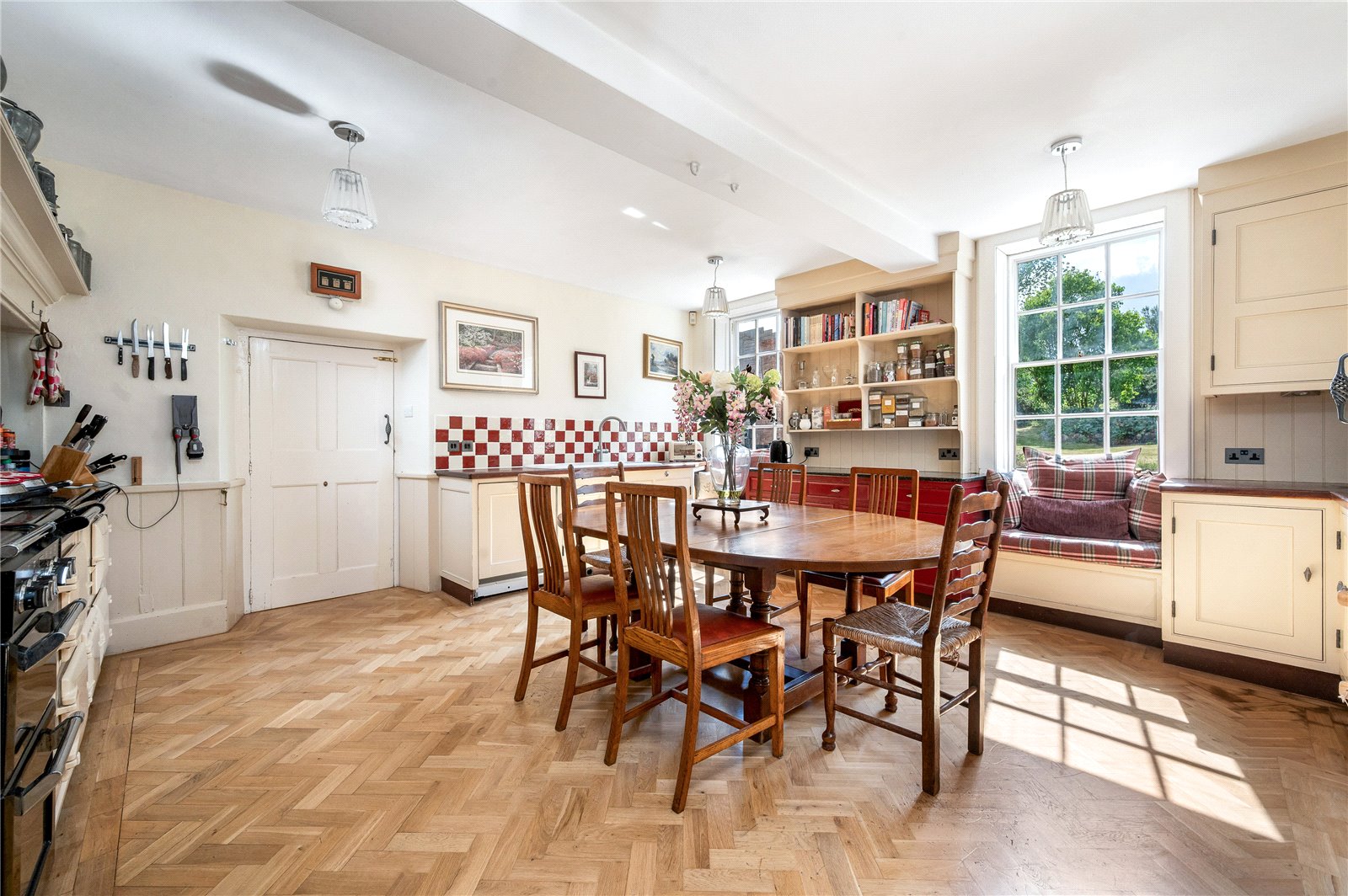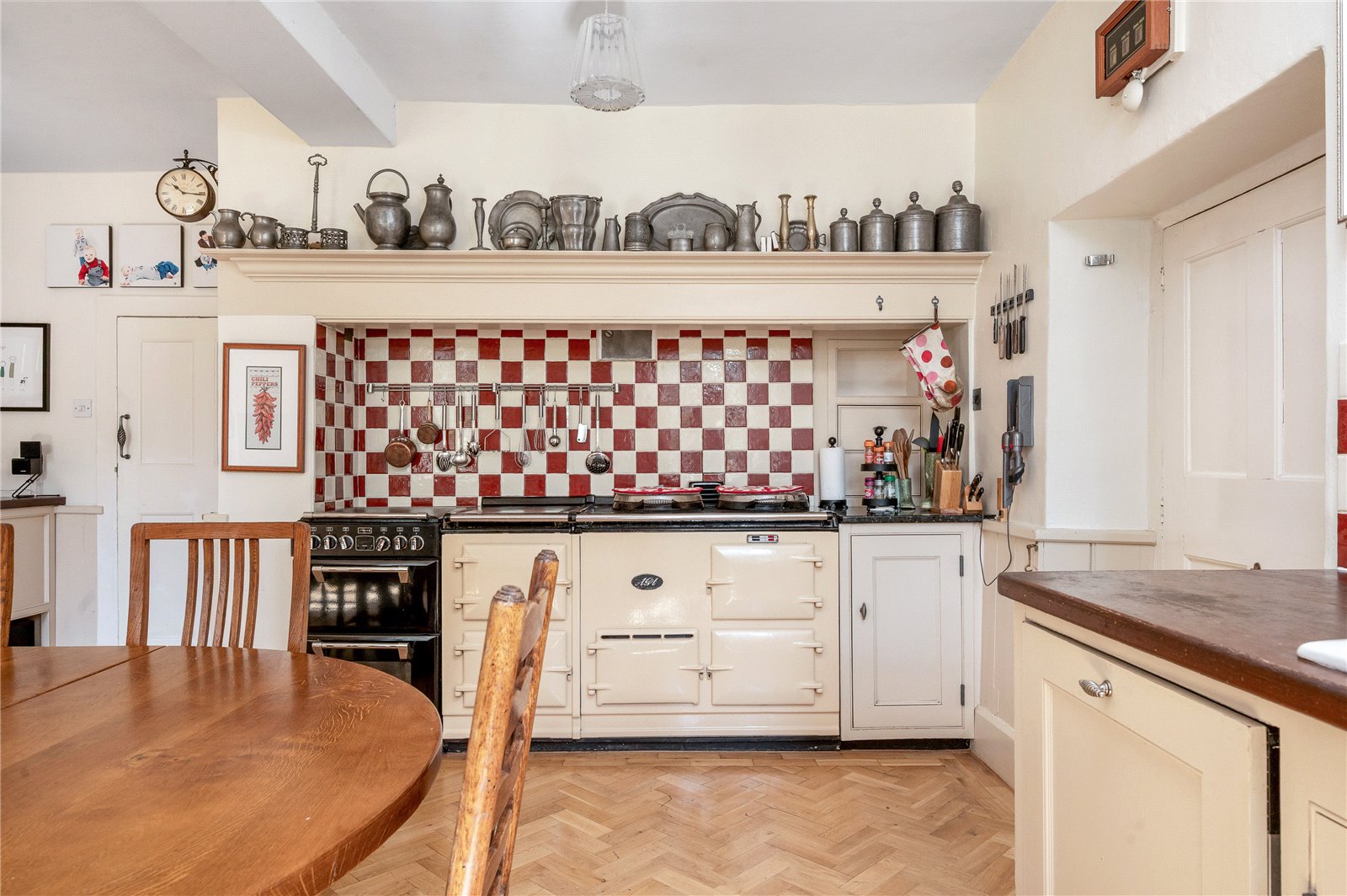 The kitchen/breakfast room is arranged as an open-plan space and forms the heart of the house, traditionally conceived and centred around a four-oven AGA with bespoke cabinetry, open shelving and ample work surfaces. A separate pantry and utility room support the kitchen, allowing the working elements of the house to remain discreetly arranged. The cellar level provides useful ancillary space including two cellar rooms and a separate wine cellar.