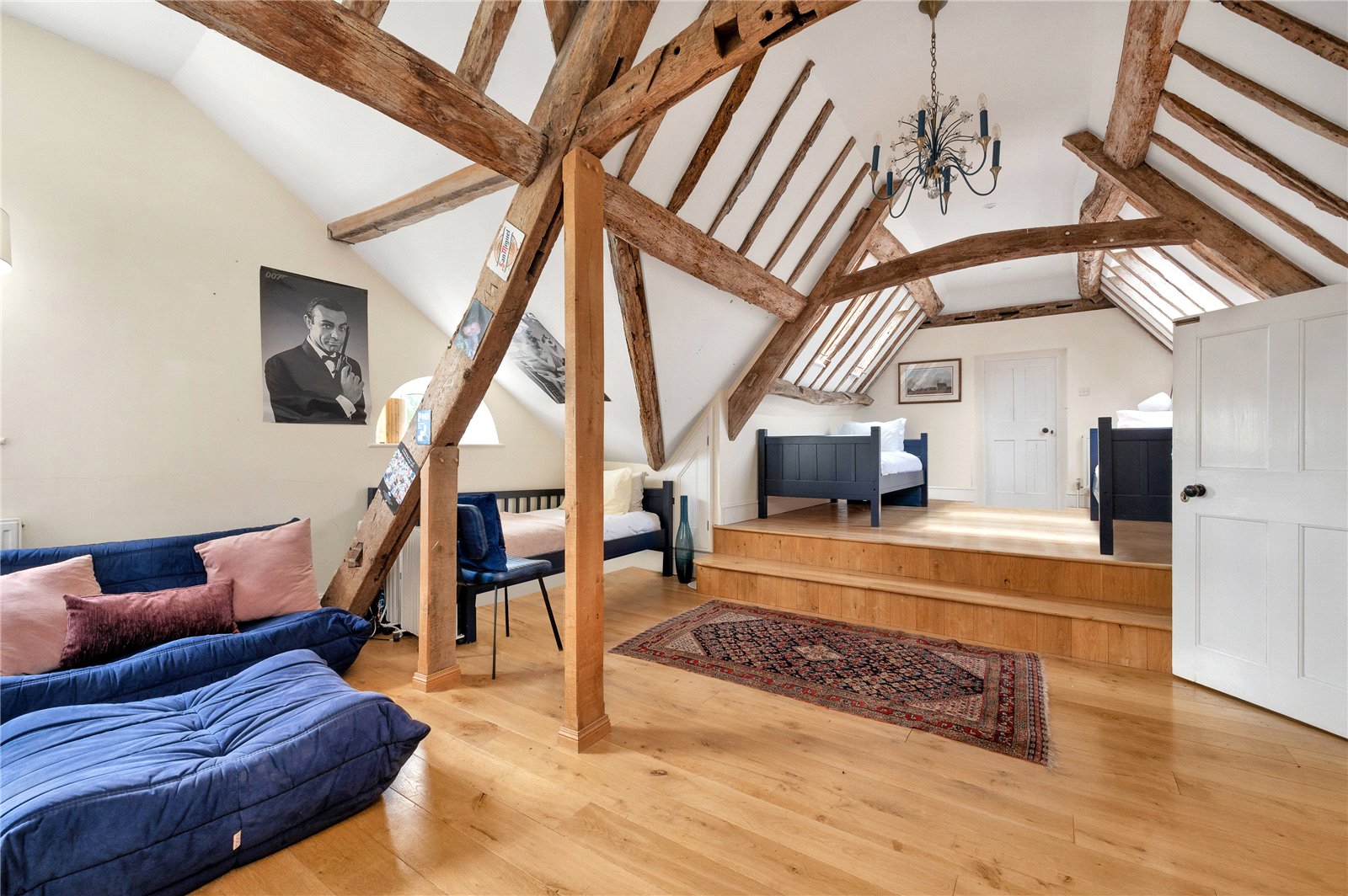 The second floor forms a distinct additional level within the house and comprises a generous living area with kitchenette, creating a versatile informal space. This floor also provides four further bedrooms, one of which benefits from an en-suite bathroom, alongside a separate family bathroom. The arrangement lends itself well to guests, older children or live-in staff, offering independence and flexibility while remaining fully integrated within the main house.