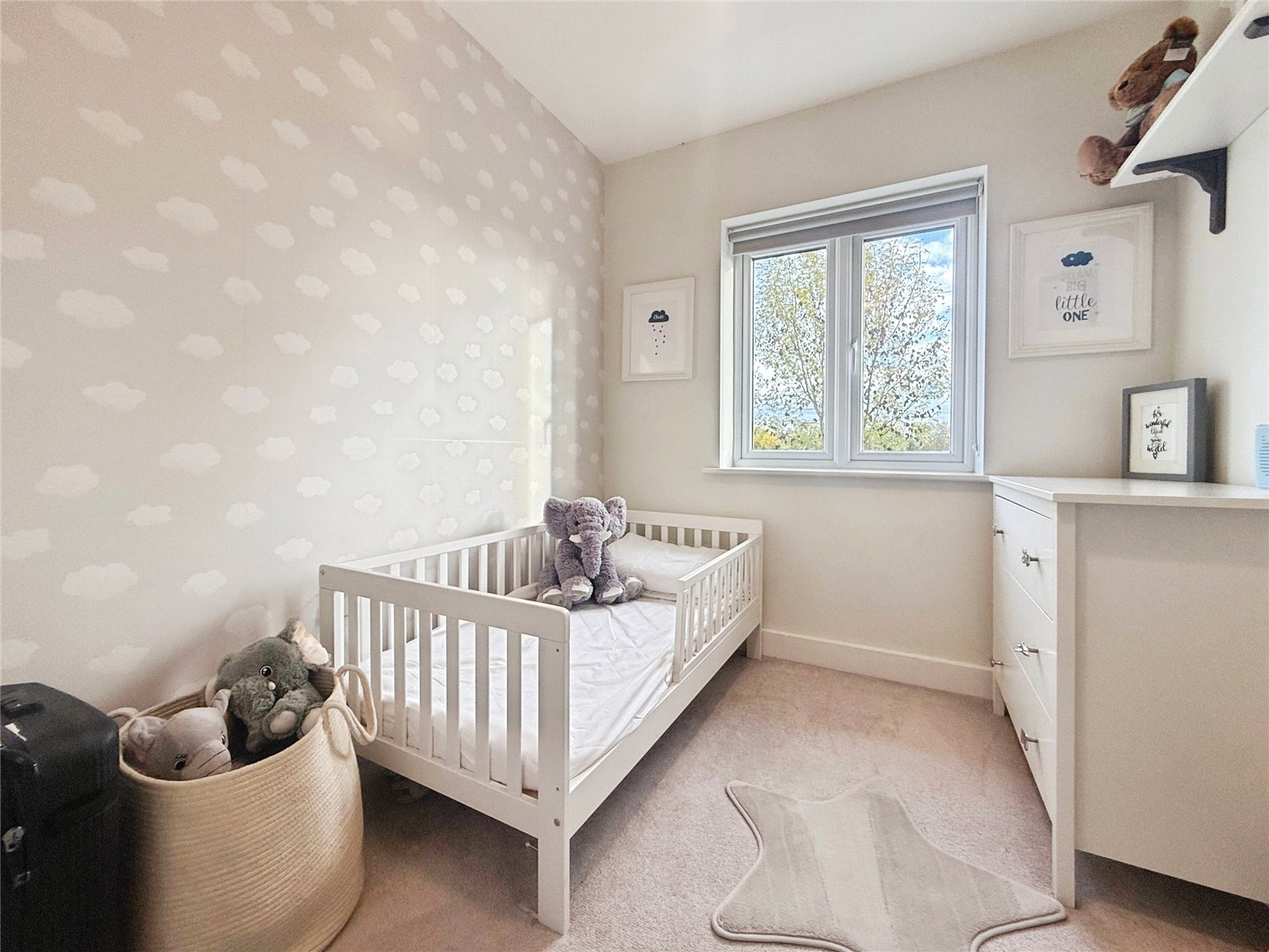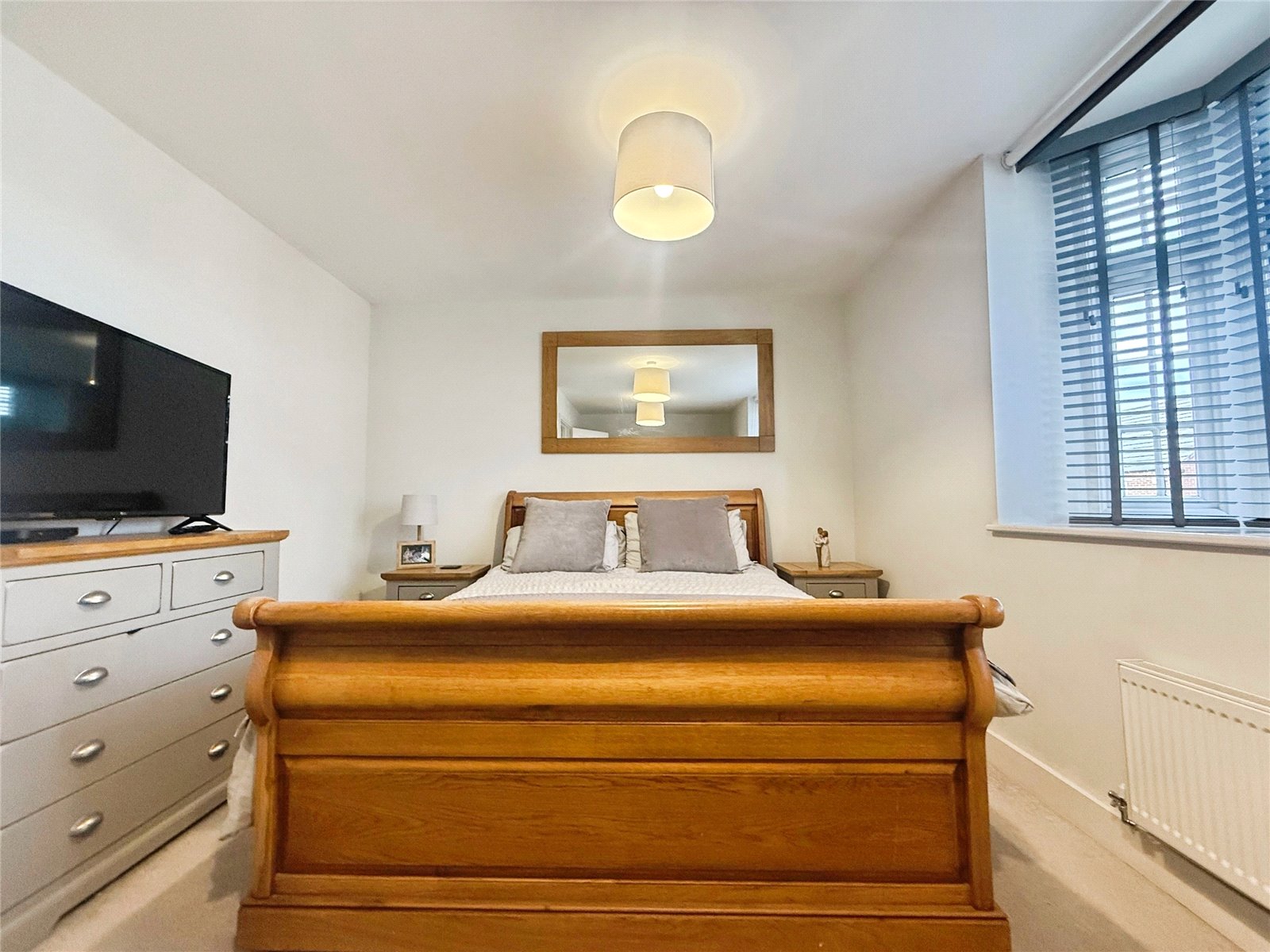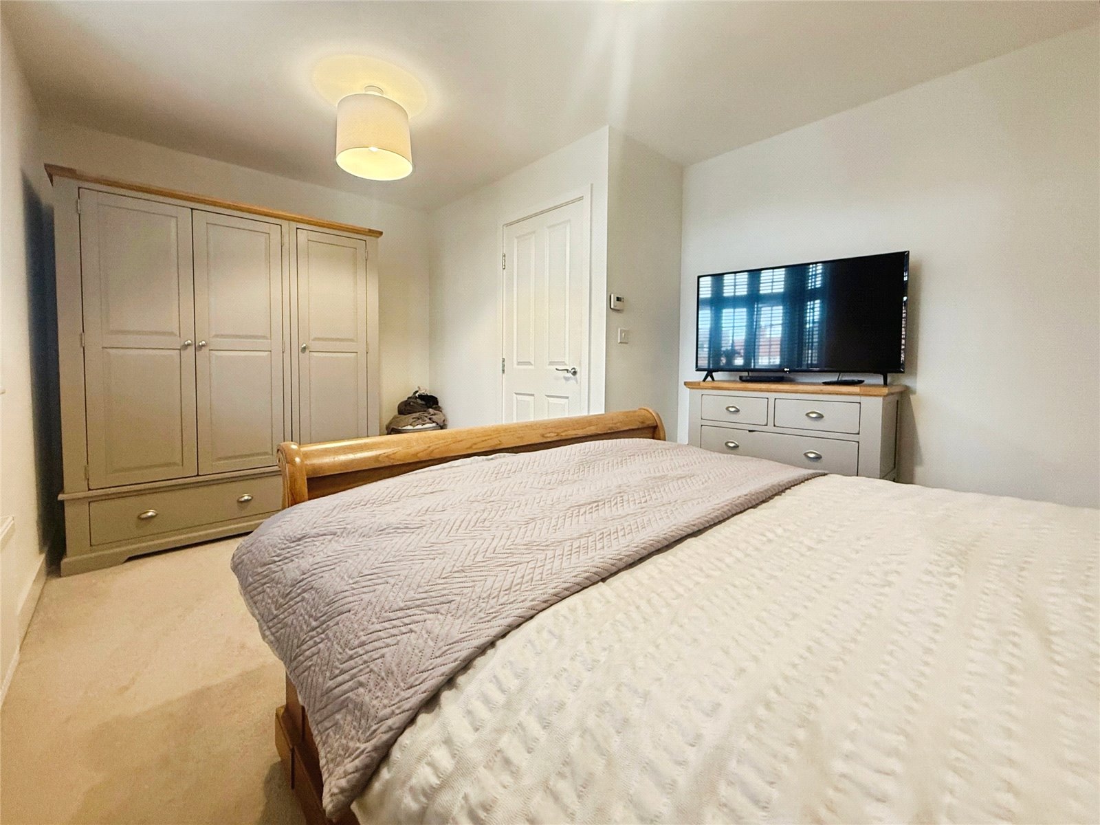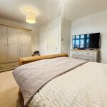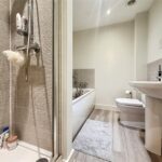Upstairs, the property provides three well-proportioned bedrooms, including a particularly impressive main bedroom with a large footprint and space for additional furnishings. The stylish family bathroom offers both a bath and a separate shower, finished with modern tiling and neutral tones.