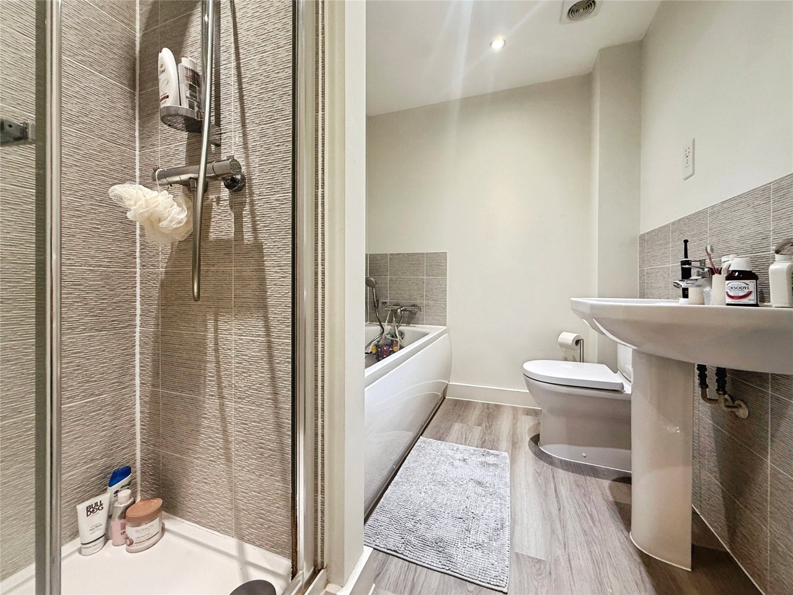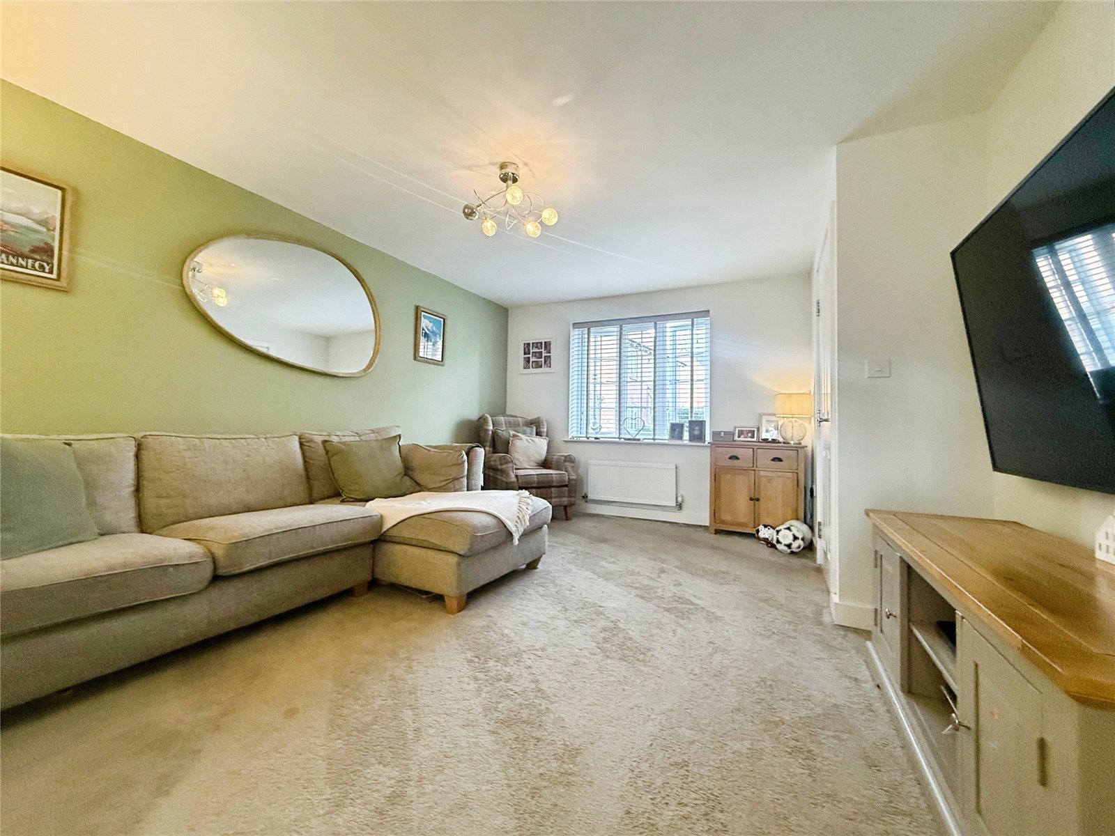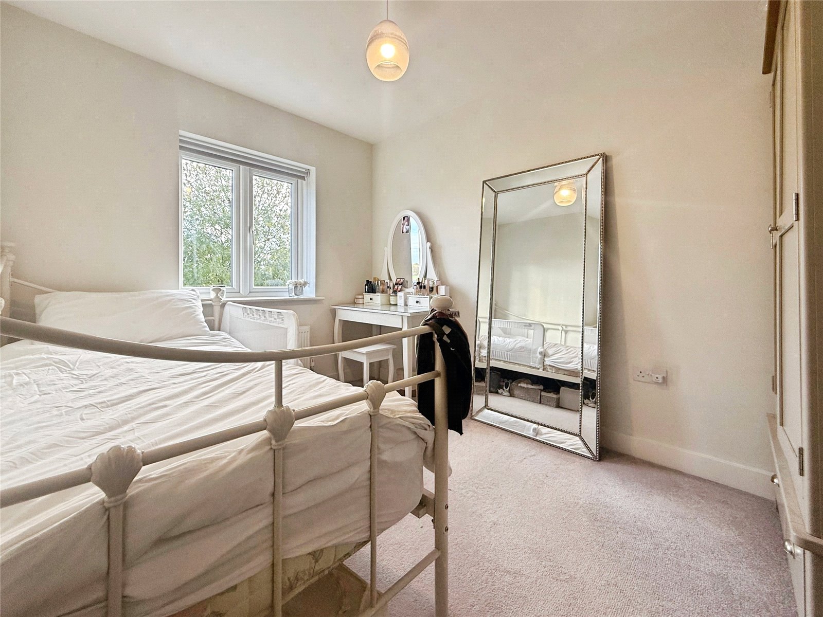 Upstairs, the property provides three well-proportioned bedrooms, including a particularly impressive main bedroom with a large footprint and space for additional furnishings. The stylish family bathroom offers both a bath and a separate shower, finished with modern tiling and neutral tones.