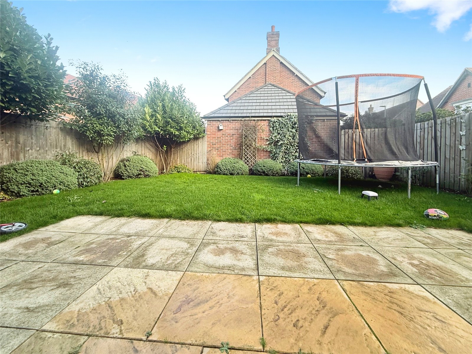 Outside, the rear garden is private and enclosed, offering a generous lawn area, mature planting and a patio that provides the perfect spot for outdoor dining and play. The property also includes a detached garage and driveway parking.
