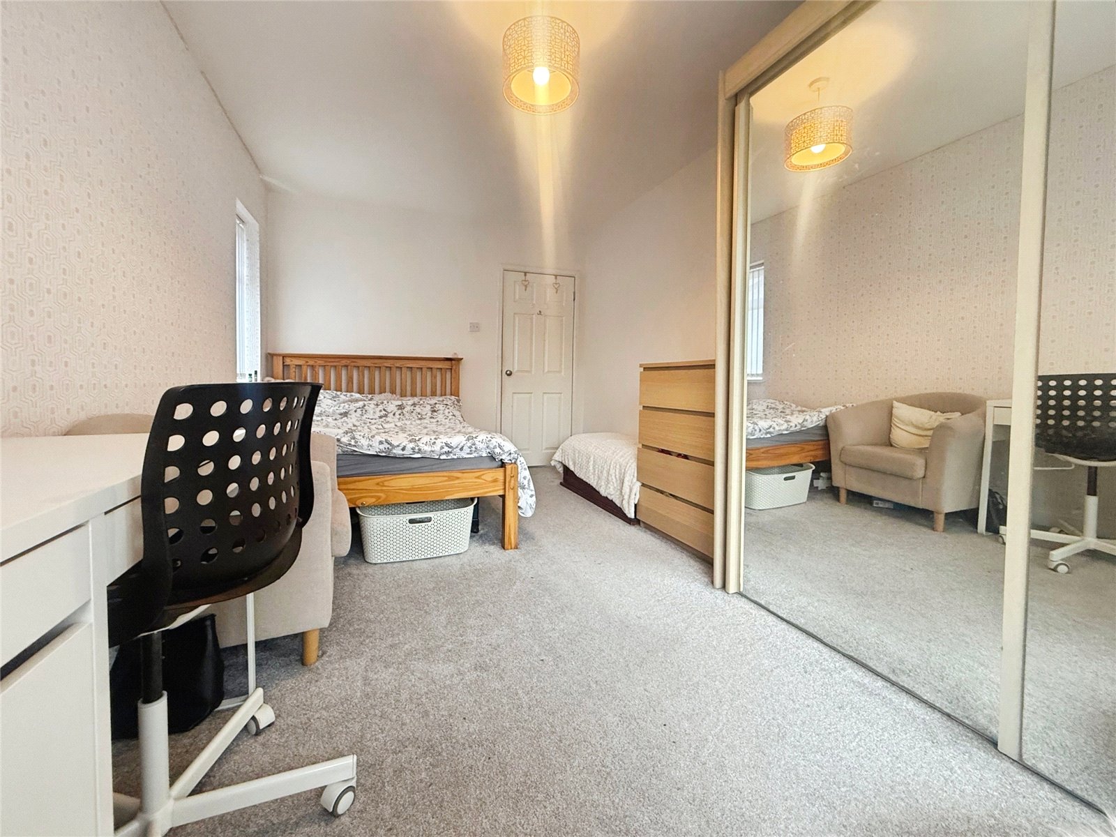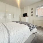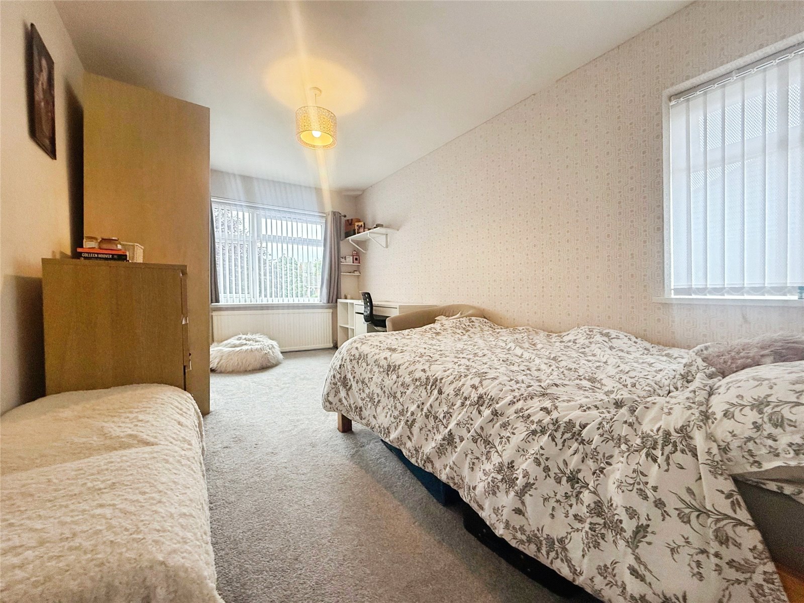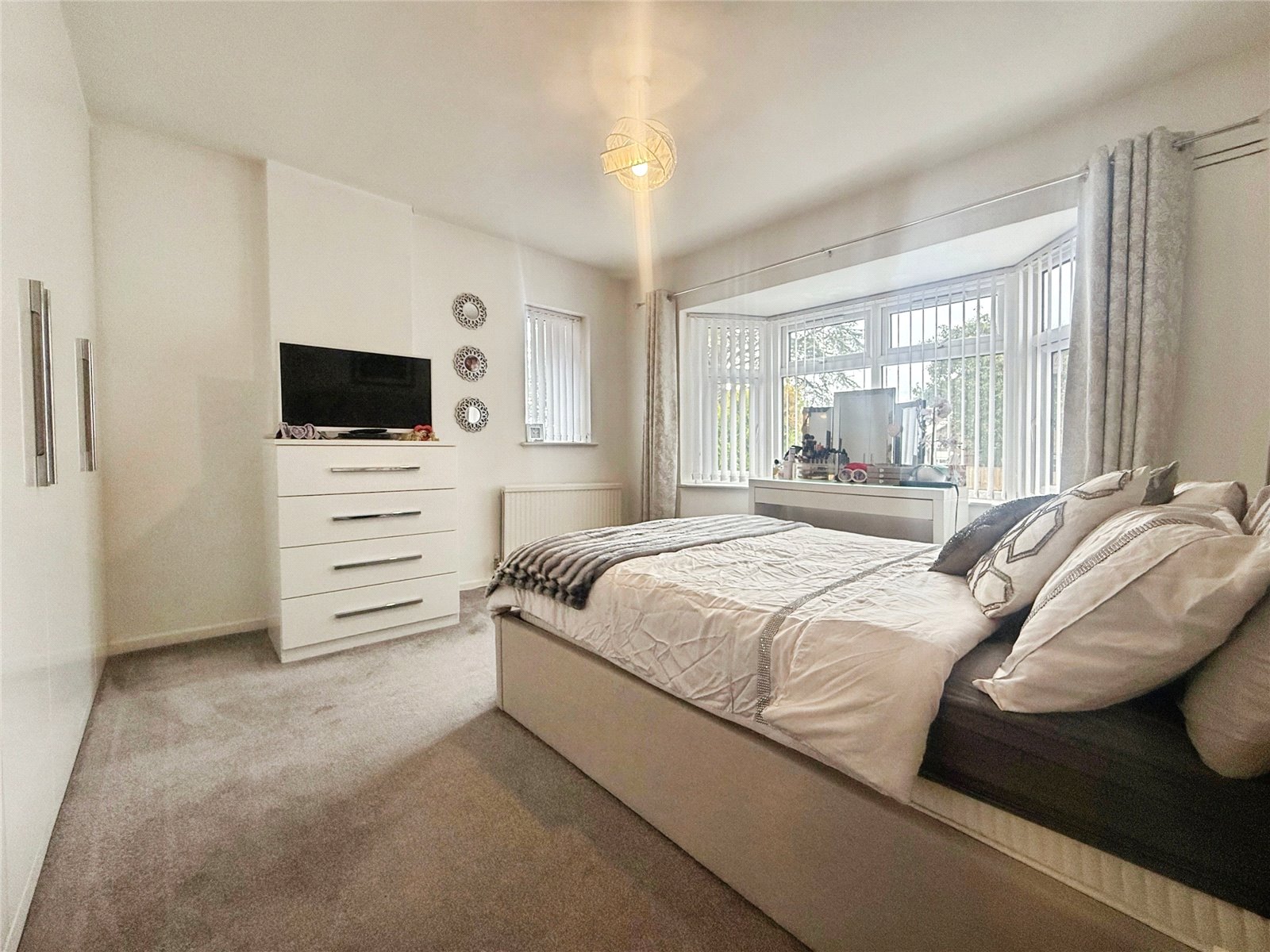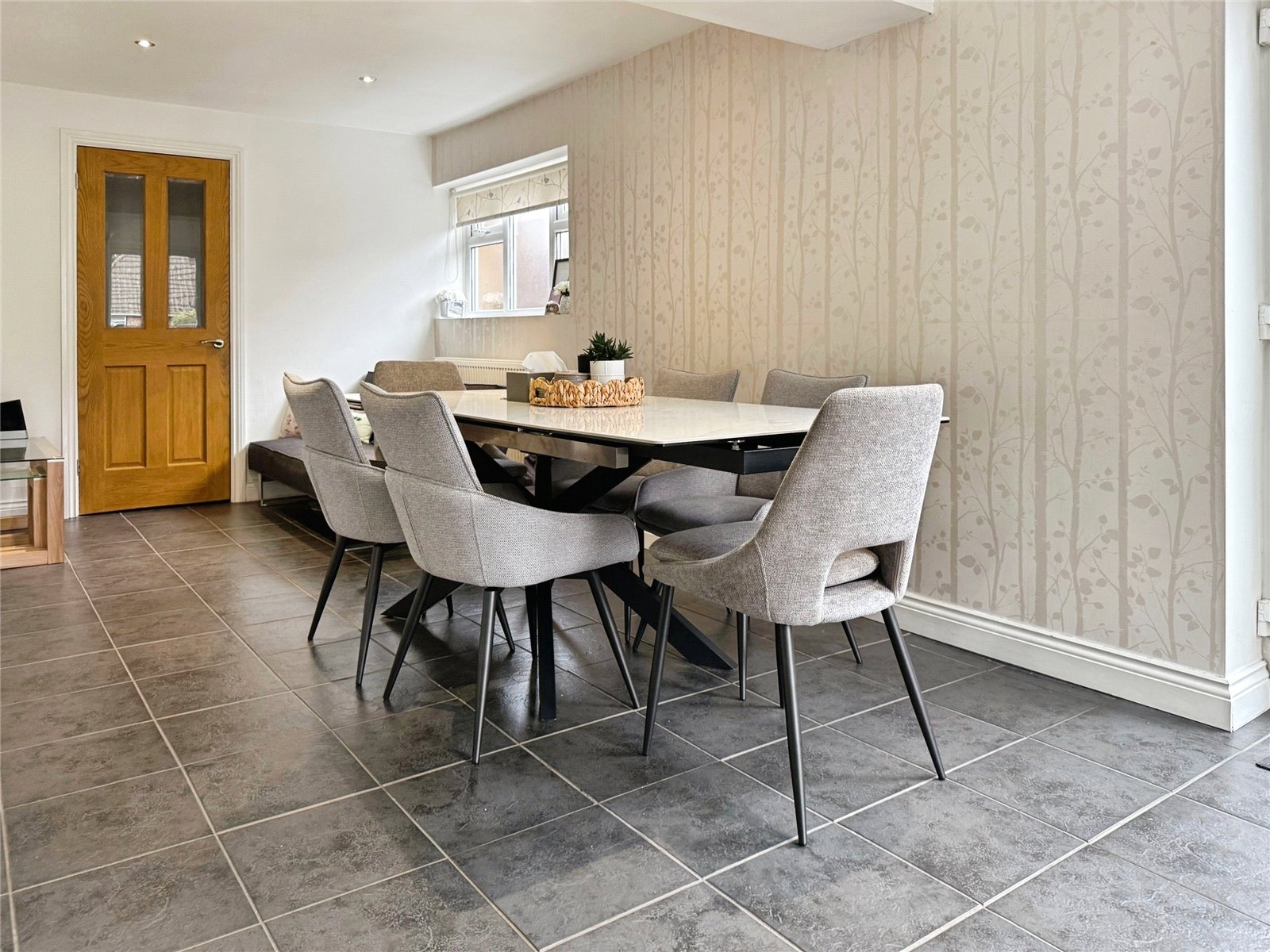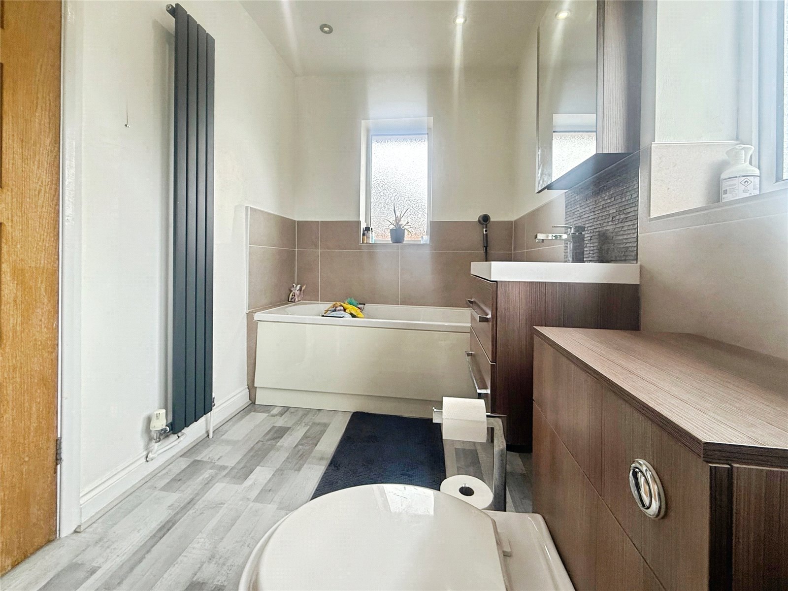 Upstairs, four well-proportioned bedrooms provide ample space for a growing household. The main bedroom enjoys fitted wardrobes and a calm, neutral décor, while the further bedrooms offer flexibility, easily accommodating children, guests, or a home office. The family bathroom is stylishly finished, with a contemporary suite and clean, modern tiling.