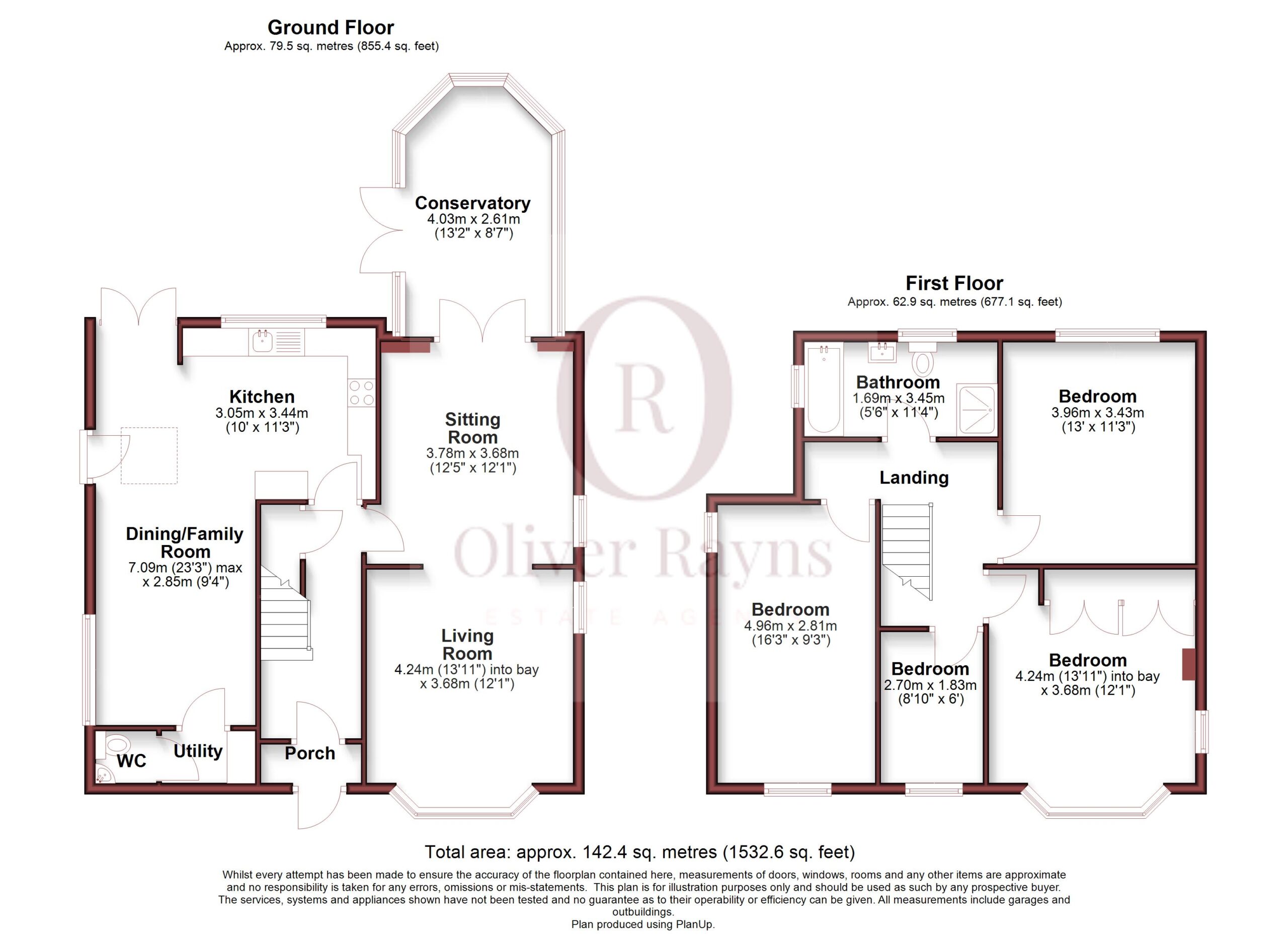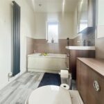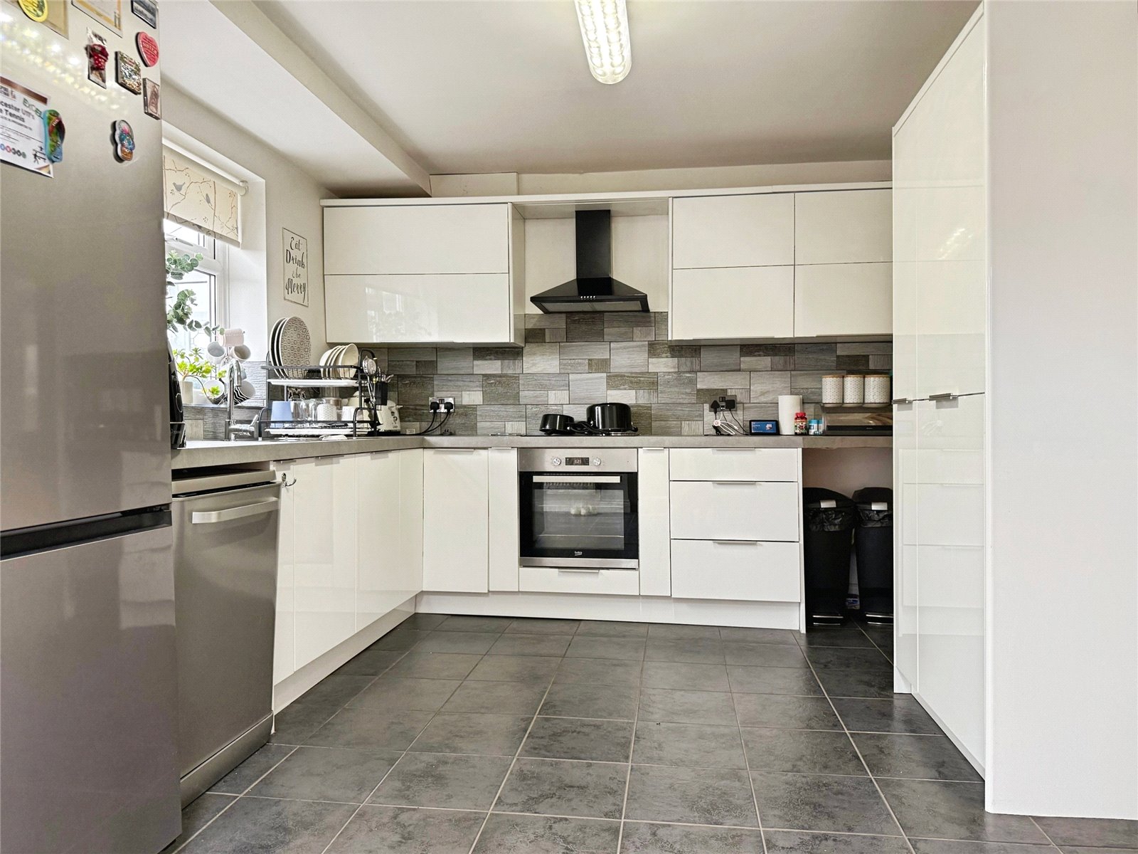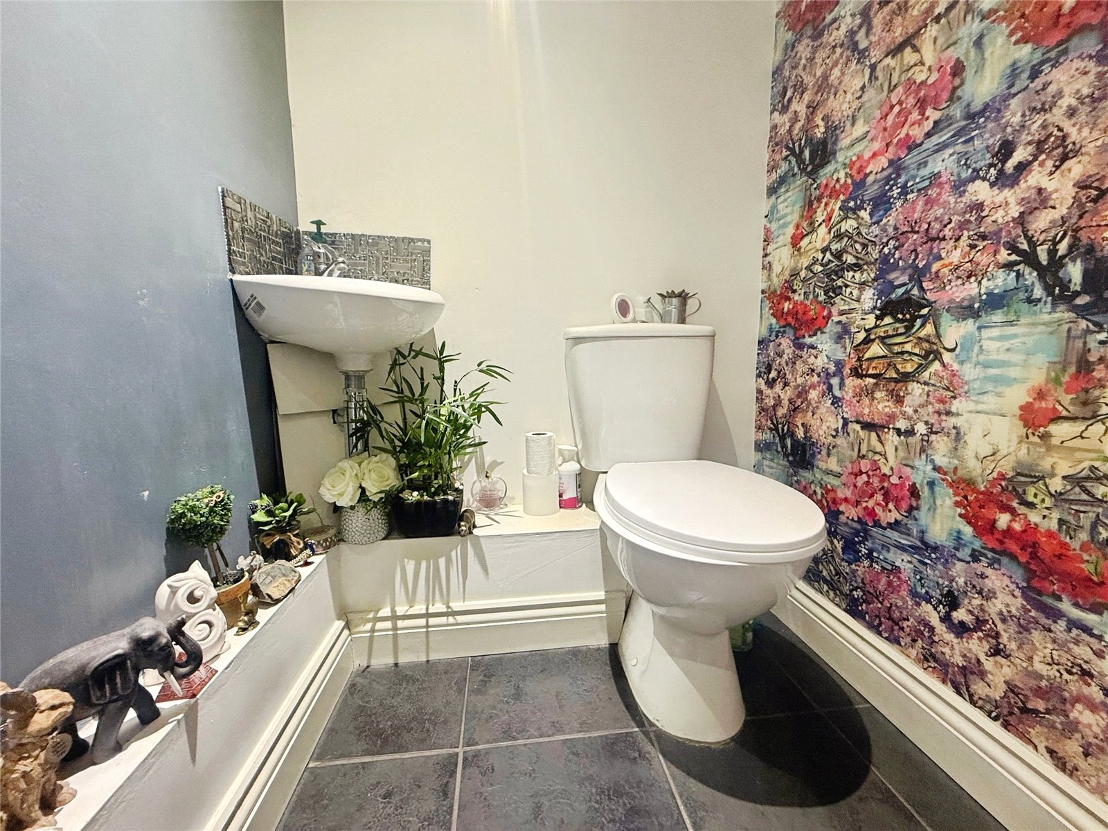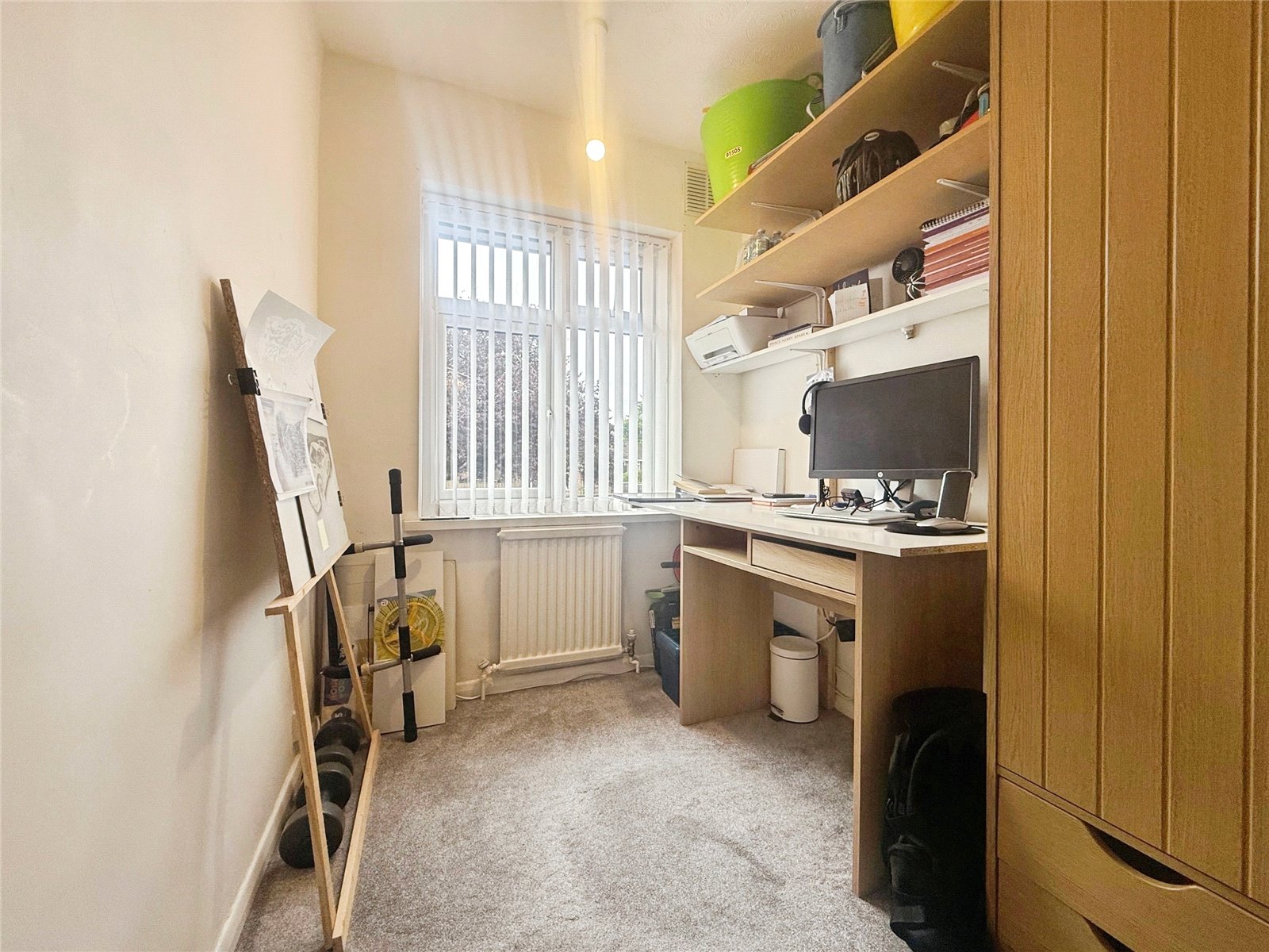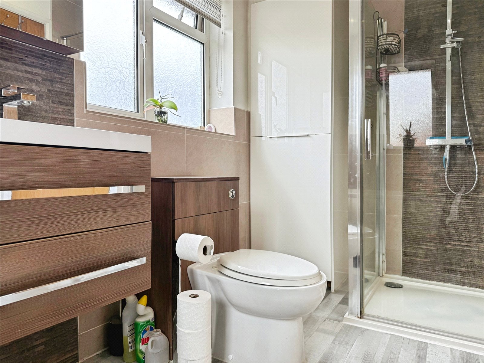 Upstairs, four well-proportioned bedrooms provide ample space for a growing household. The main bedroom enjoys fitted wardrobes and a calm, neutral décor, while the further bedrooms offer flexibility, easily accommodating children, guests, or a home office. The family bathroom is stylishly finished, with a contemporary suite and clean, modern tiling.