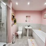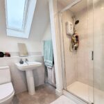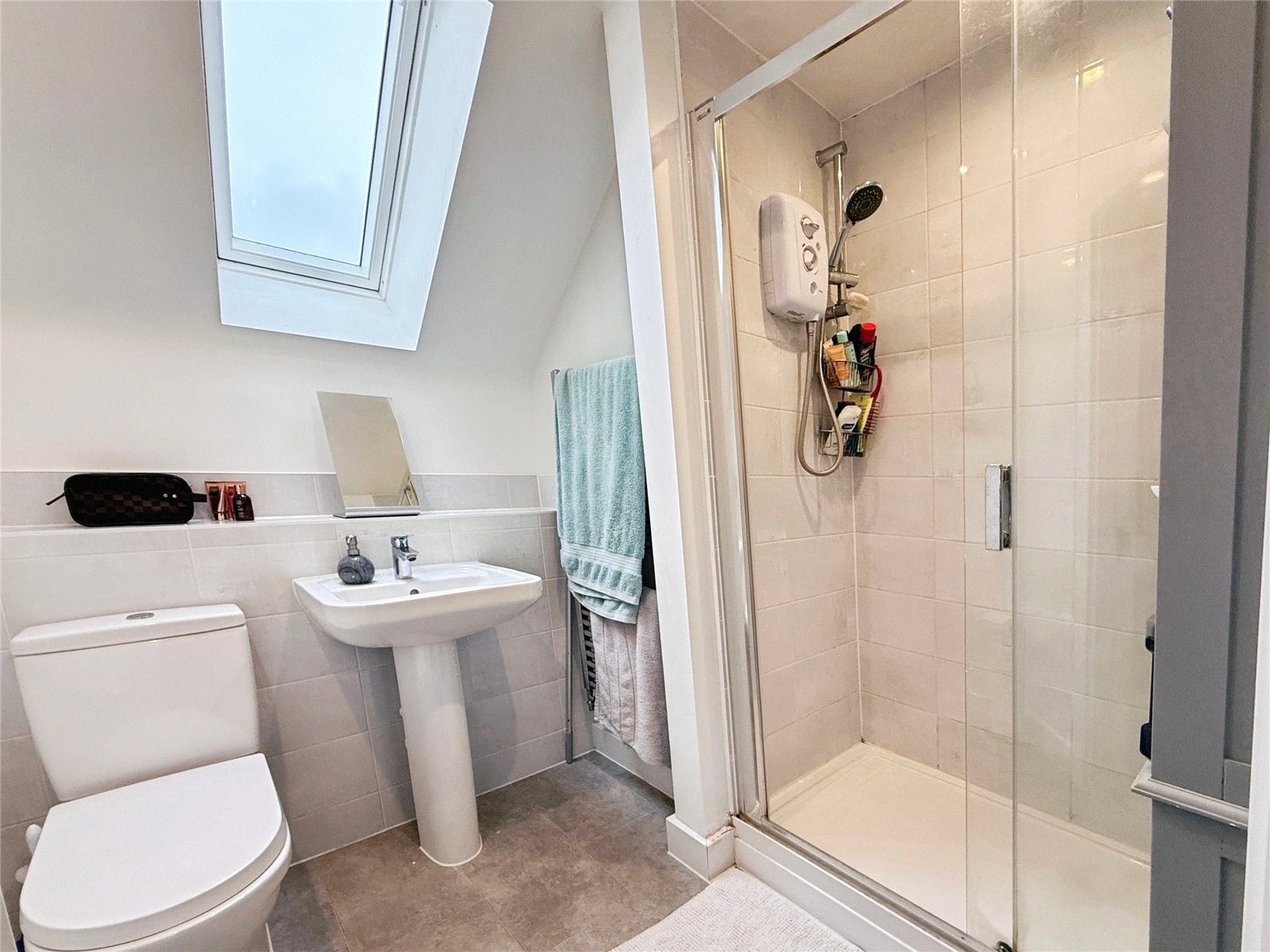 The first floor offers two well-proportioned bedrooms, both bright and thoughtfully styled, making them ideal for children, guests or home working. These rooms are served by a contemporary family bathroom, fitted with a modern suite including bath and separate shower, finished with attractive tiling and clean lines.