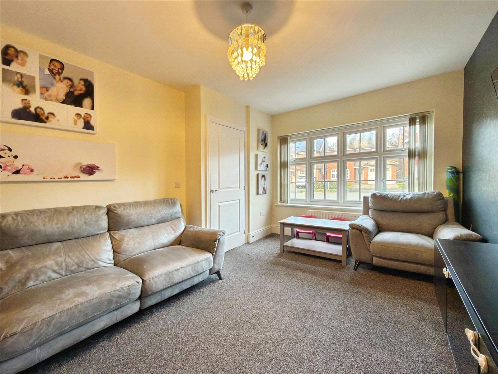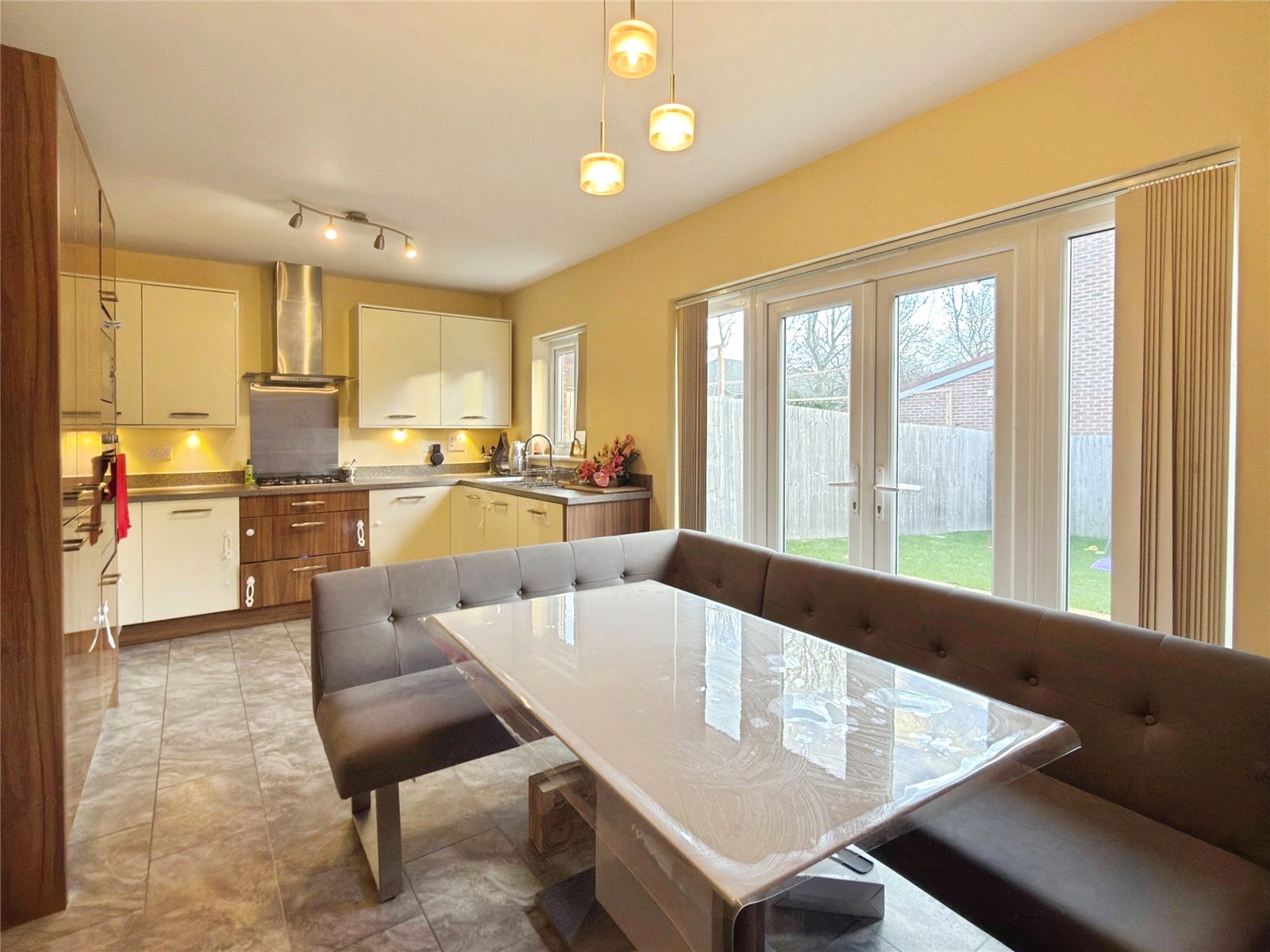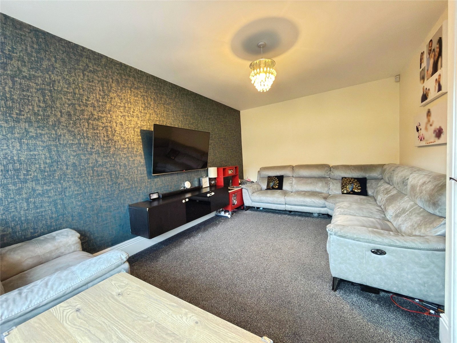 The ground floor is entered via a welcoming central hallway, which gives access to the main living areas, a convenient ground floor WC, and the staircase to the first floor. To the front of the property is a bright and comfortable lounge, ideal for everyday living and relaxing. To the rear, the spacious kitchen diner is fitted with a range of wall and base units and offers ample room for dining and entertaining. Double doors open directly onto the garden, creating a pleasant connection between the indoor and outdoor spaces.