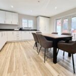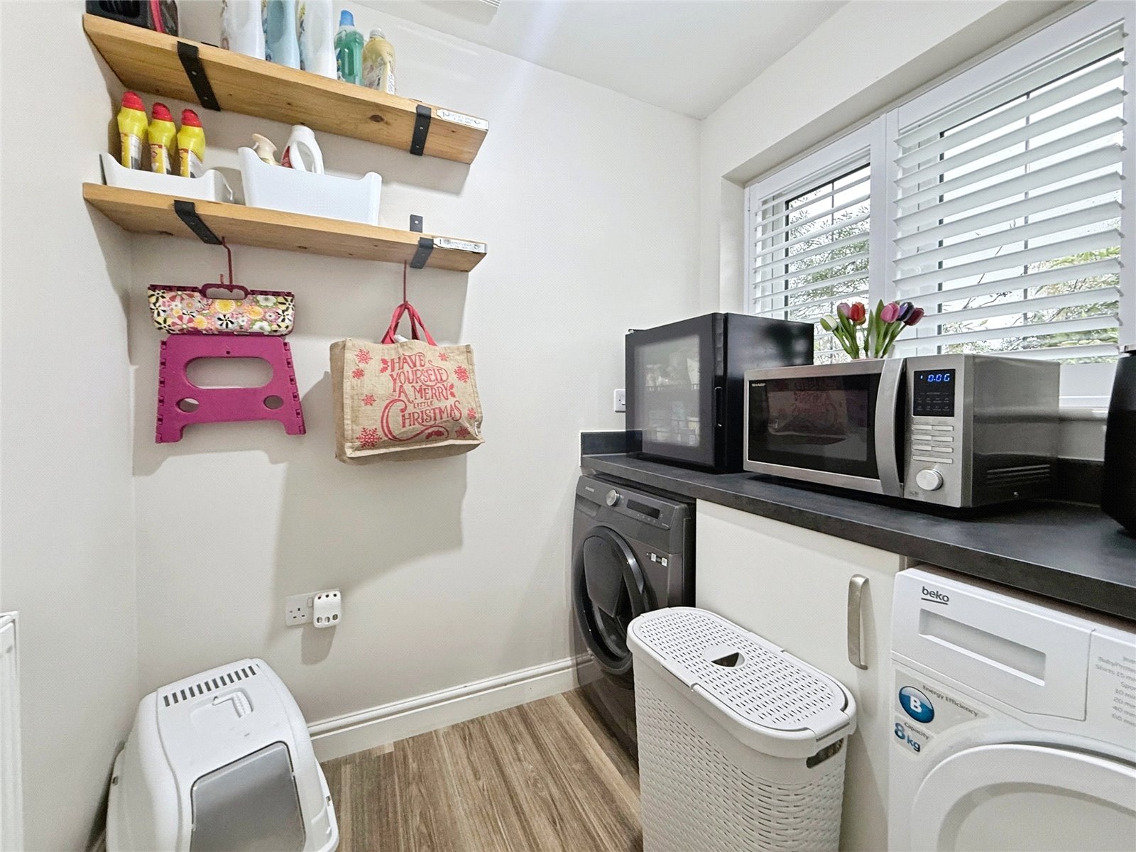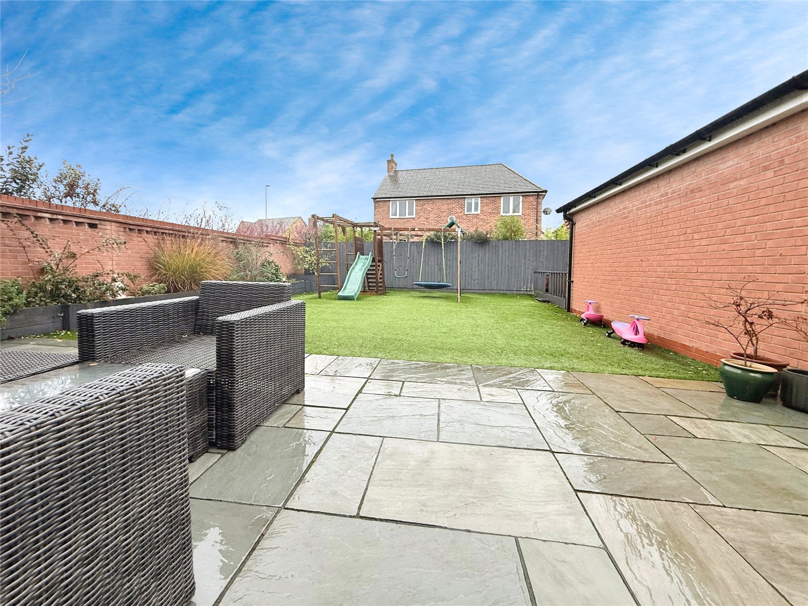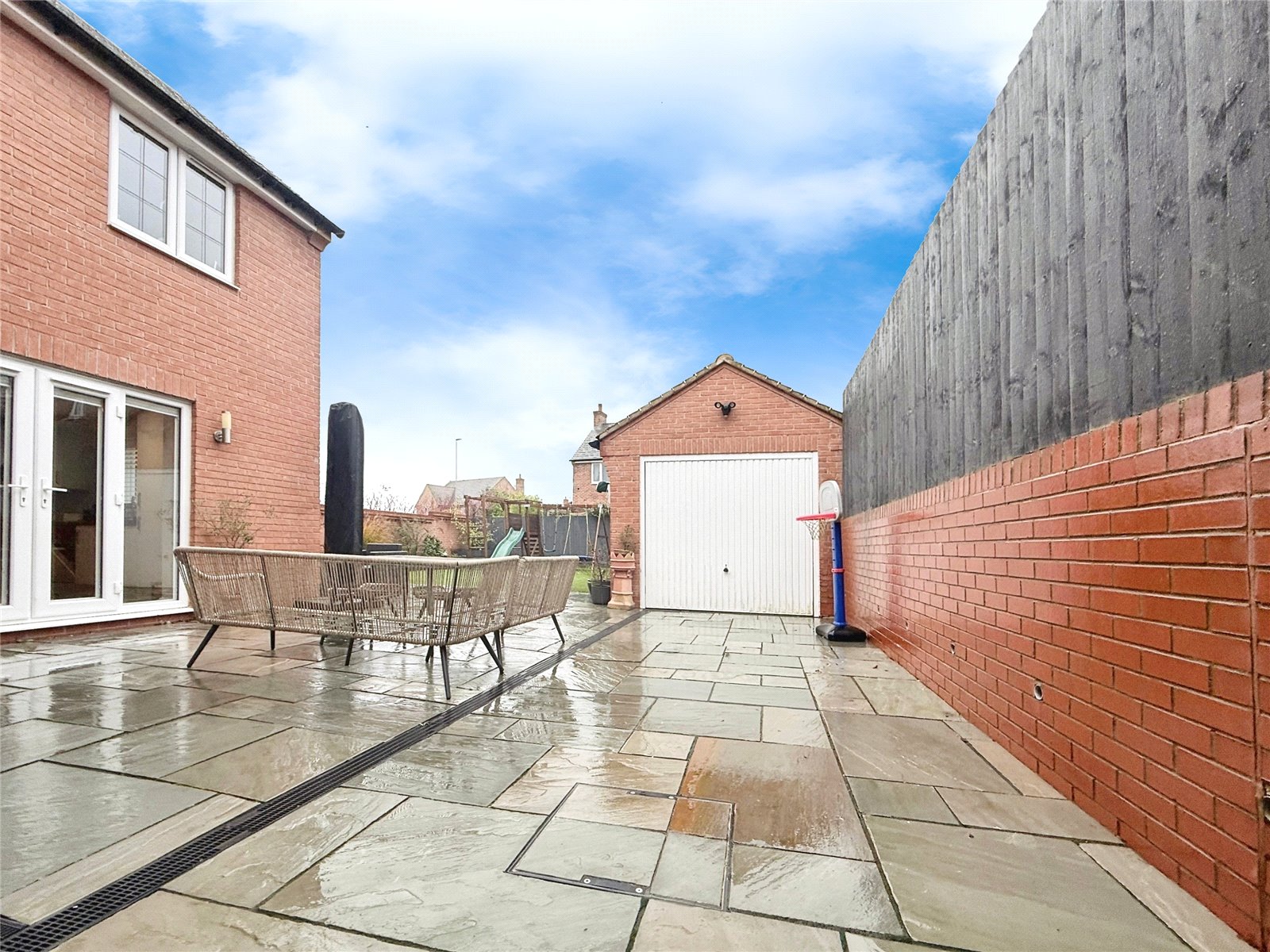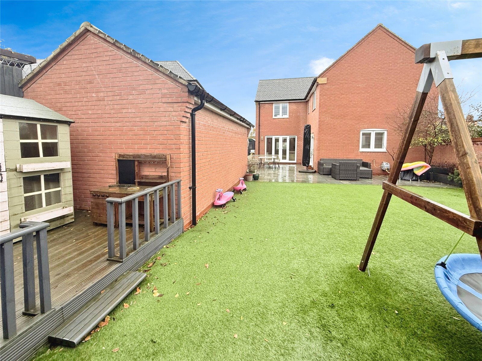 The property’s exterior is equally appealing: to the front there is offstreet parking and access to a detached single garage, while the rear garden has been landscaped for low maintenance with an artificial lawn, large patio seating area, and children’s playhouse, offering plenty of space for outdoor dining and play.