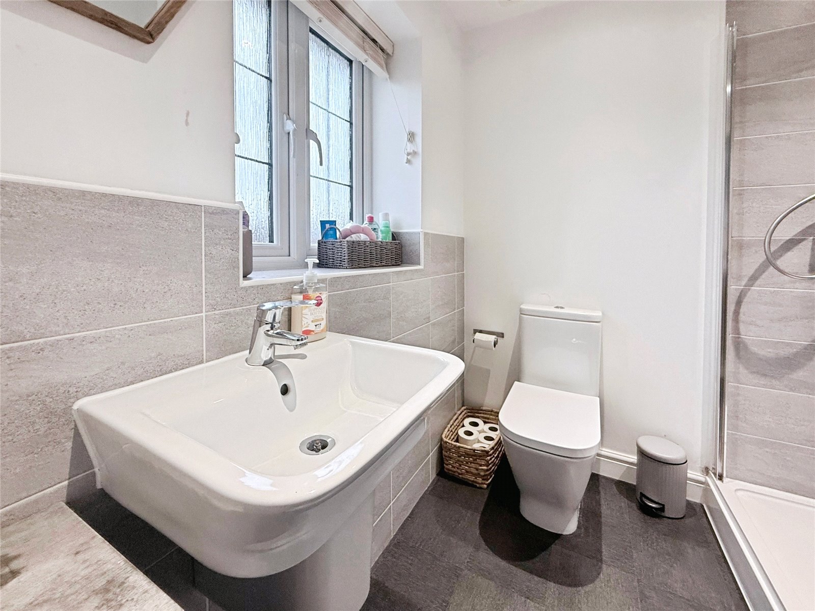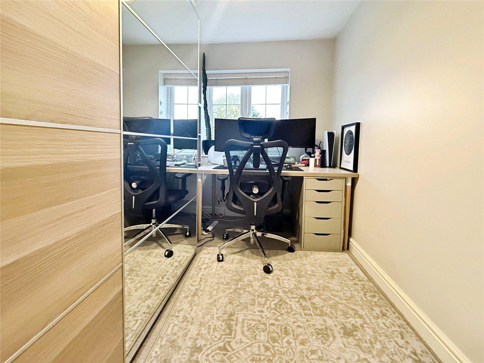Upstairs, the principal bedroom enjoys views over the garden, builtin wardrobes and its own ensuite shower room. There are two further generous double bedrooms and a fourth bedroom that currently serves as a home office,