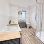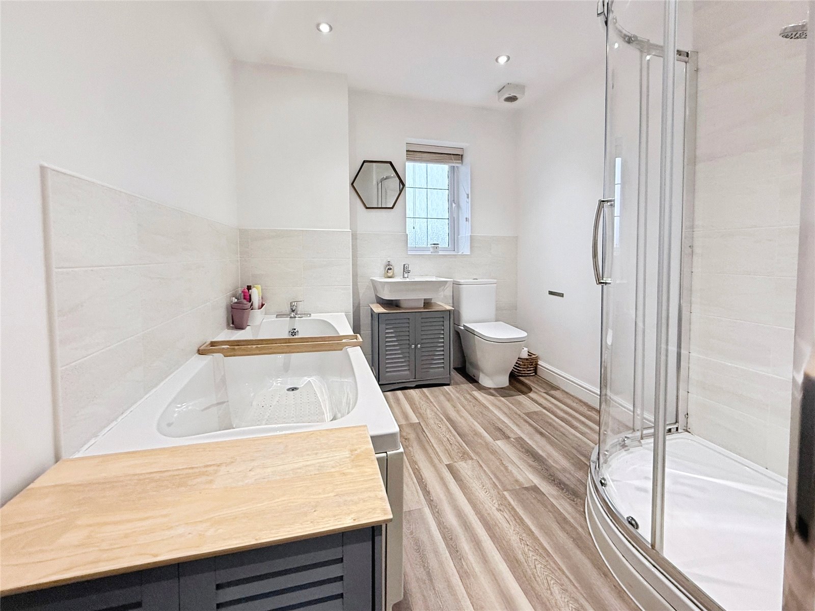 along with a contemporary family bathroom fitted with both a fullsize bath and separate shower.