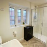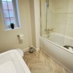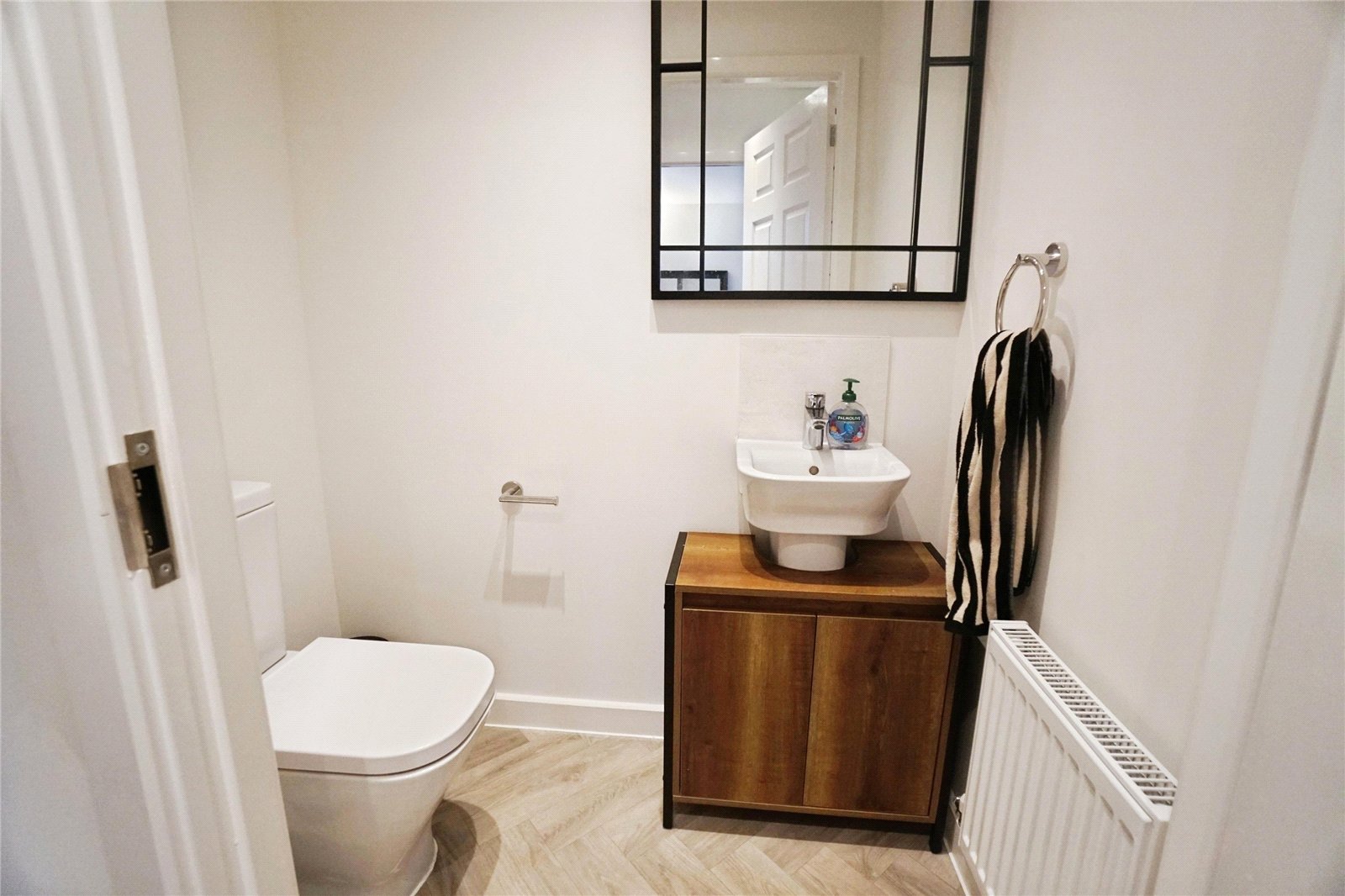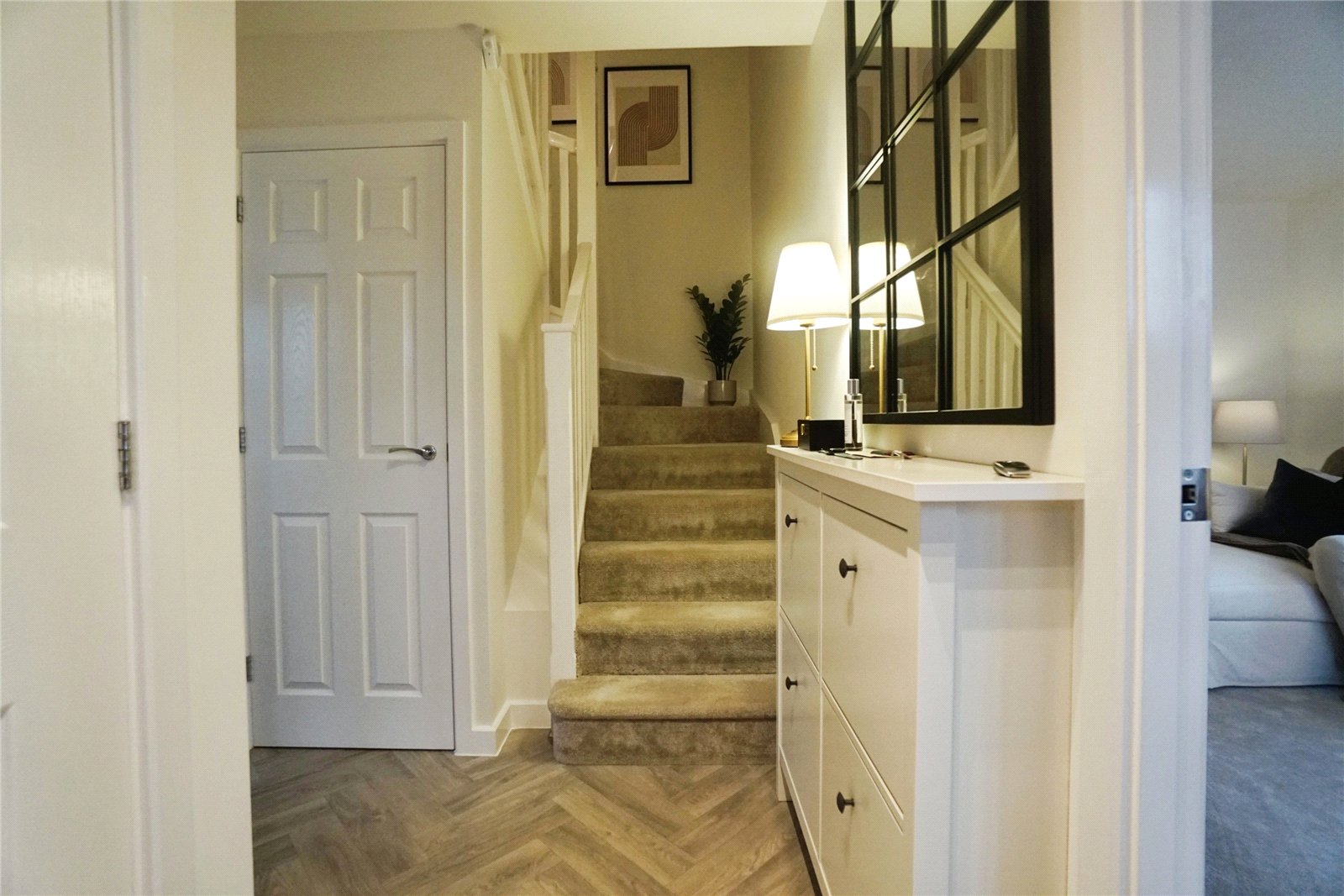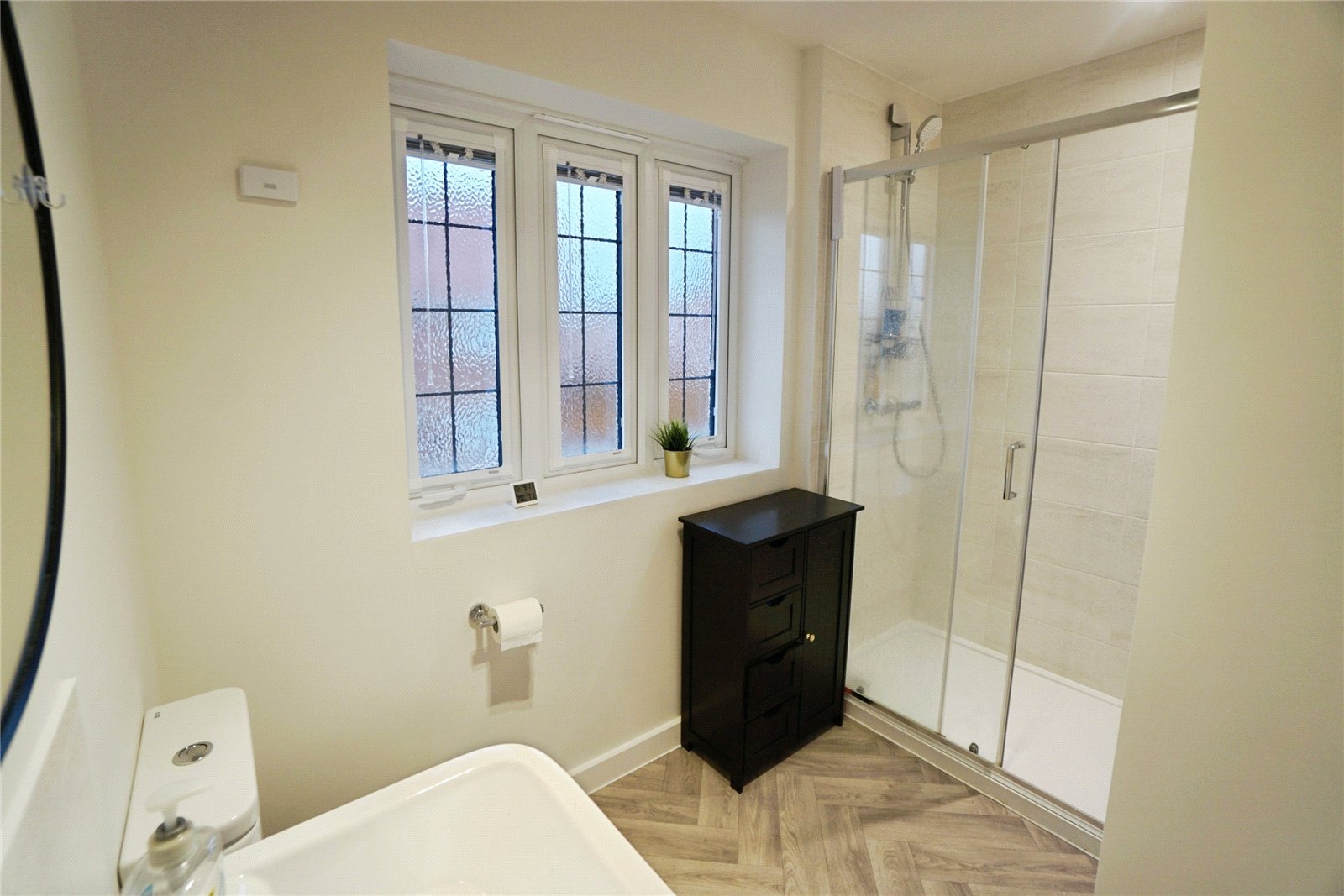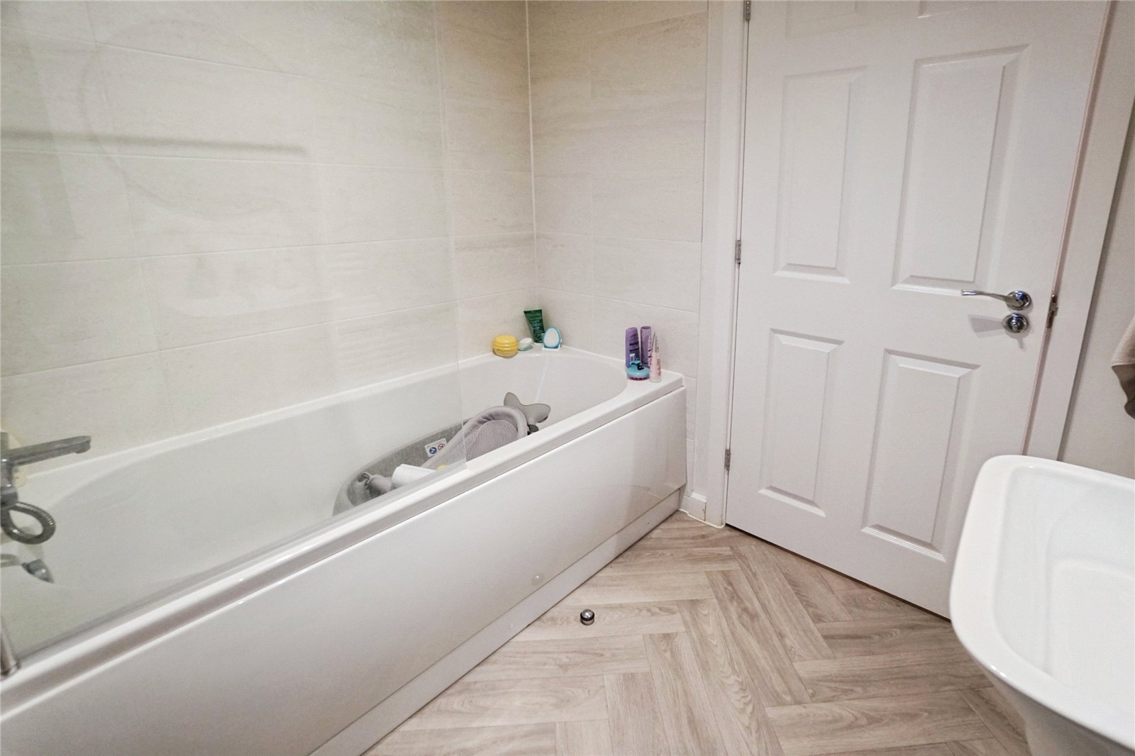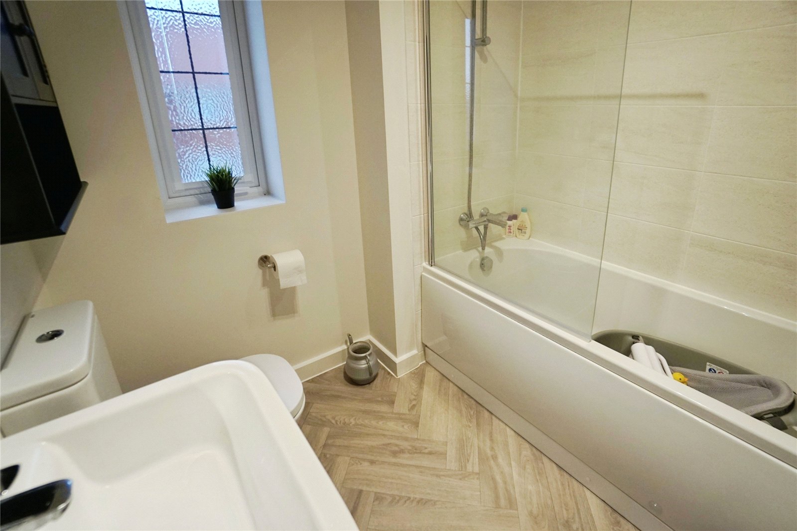 Upstairs are three well-proportioned bedrooms. The main bedroom benefits from built-in storage and its own en-suite shower room, while the remaining two bedrooms make excellent children’s rooms, guest rooms or home offices. A modern family bathroom with a clean, neutral finish completes the first floor. All rooms are beautifully maintained and presented.