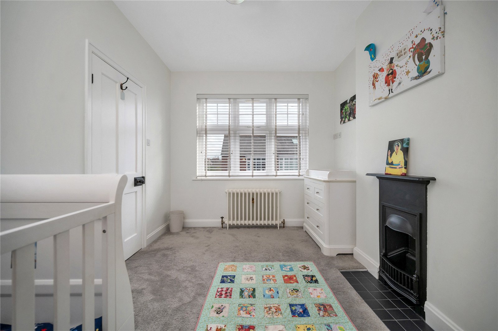 To the first floor, a spacious landing leads to four bedrooms, comprising three generous double rooms and a well-proportioned single, ideal as a nursery, dressing room or home office. The bedrooms have been further enhanced with brand new carpets throughout, fitted with the thickest underlay for exceptional comfort underfoot, whilst period fireplaces and tasteful décor continue the home’s cohesive design.