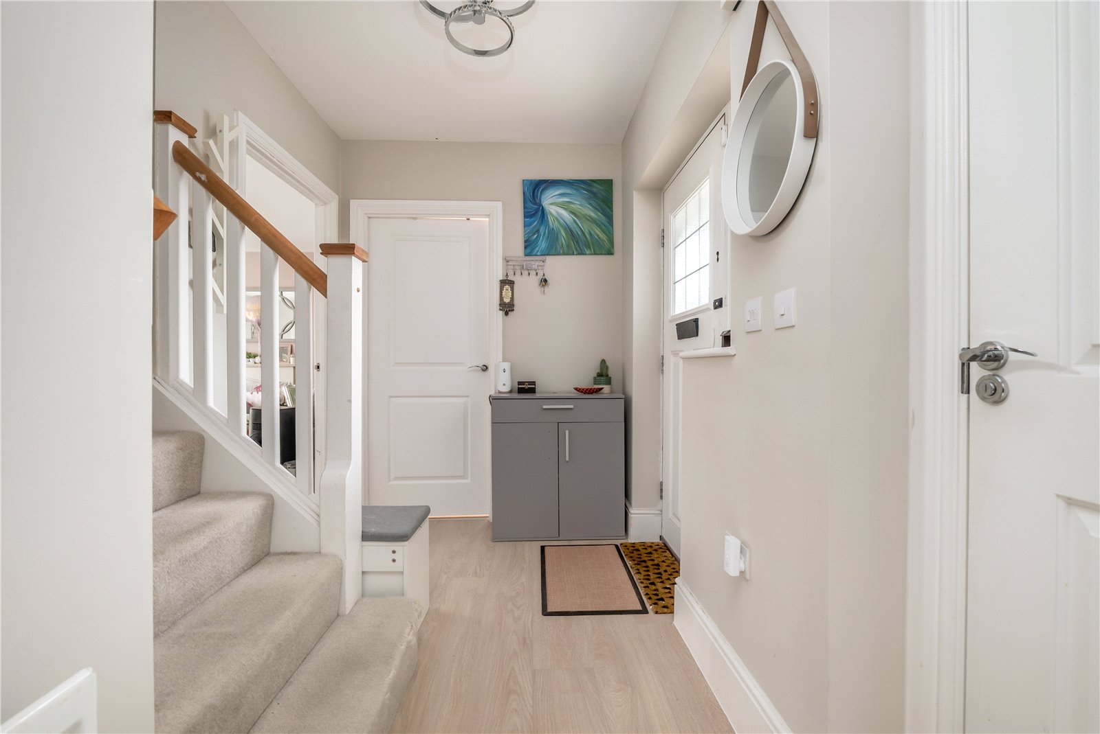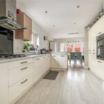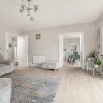 Step inside and the layout immediately makes sense. The hallway creates a clear line of sight through the house, drawing you forward while offering access to the main reception spaces. To the front, the living room feels settled and relaxed, with generous proportions and a layout that works easily around everyday life. Light enters through wide windows, and the room offers a sense of separation from the rest of the house without feeling closed off.