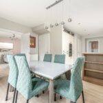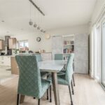 Moving through, the dining room sits naturally between the living space and the kitchen, making it ideal for both family use and entertaining. French doors open directly onto the garden, allowing light to move through the ground floor and creating a natural connection to the outside. The flow between rooms feels intuitive, with each space clearly defined but never disconnected.