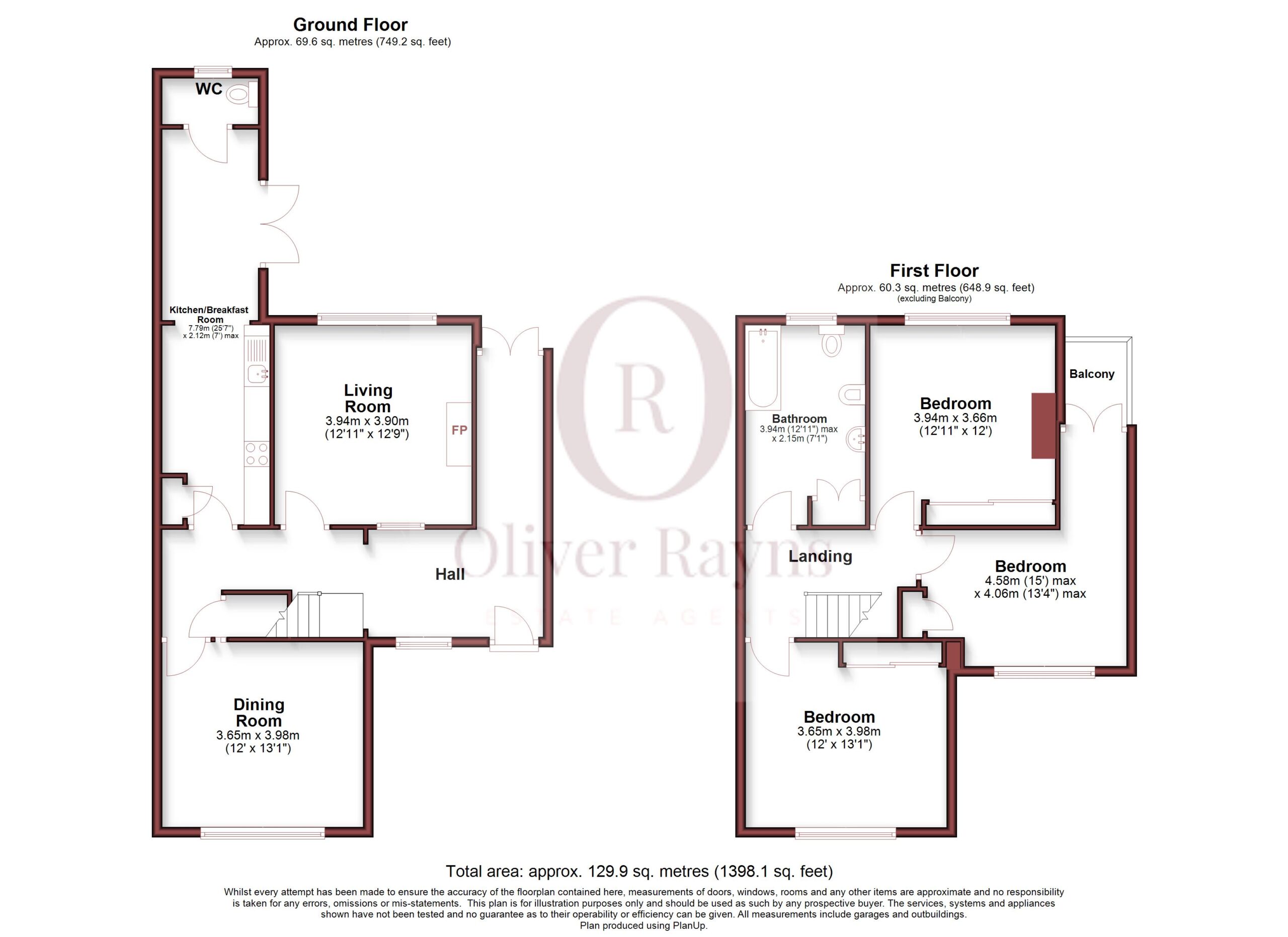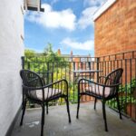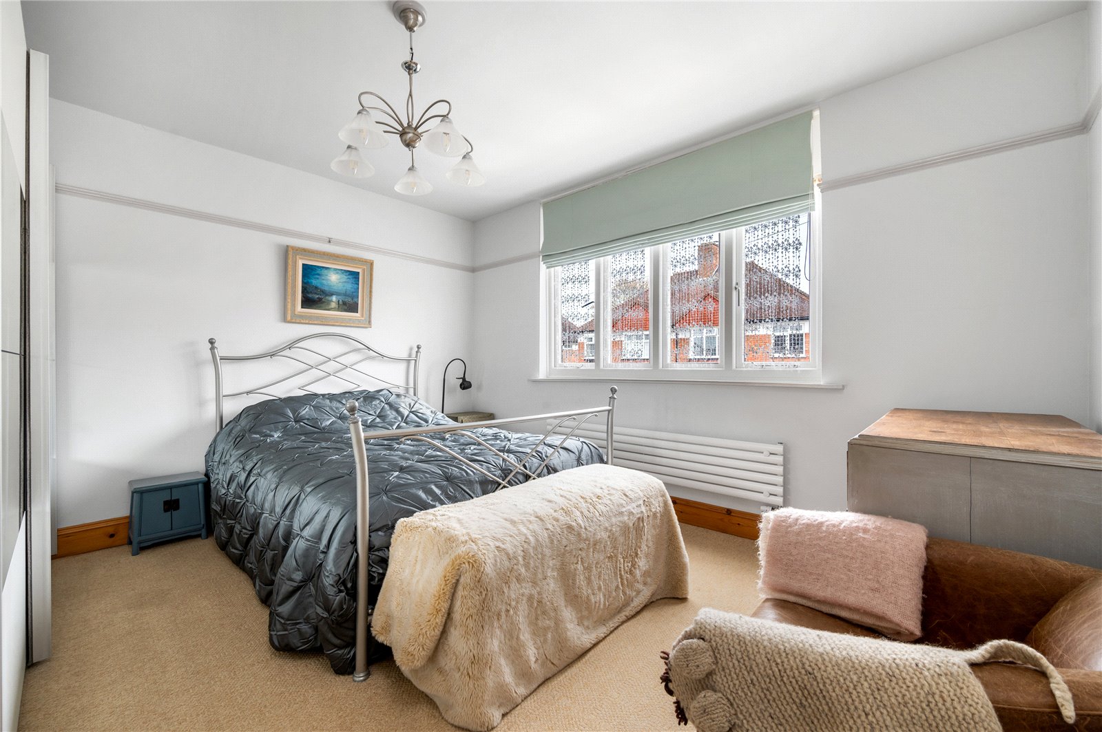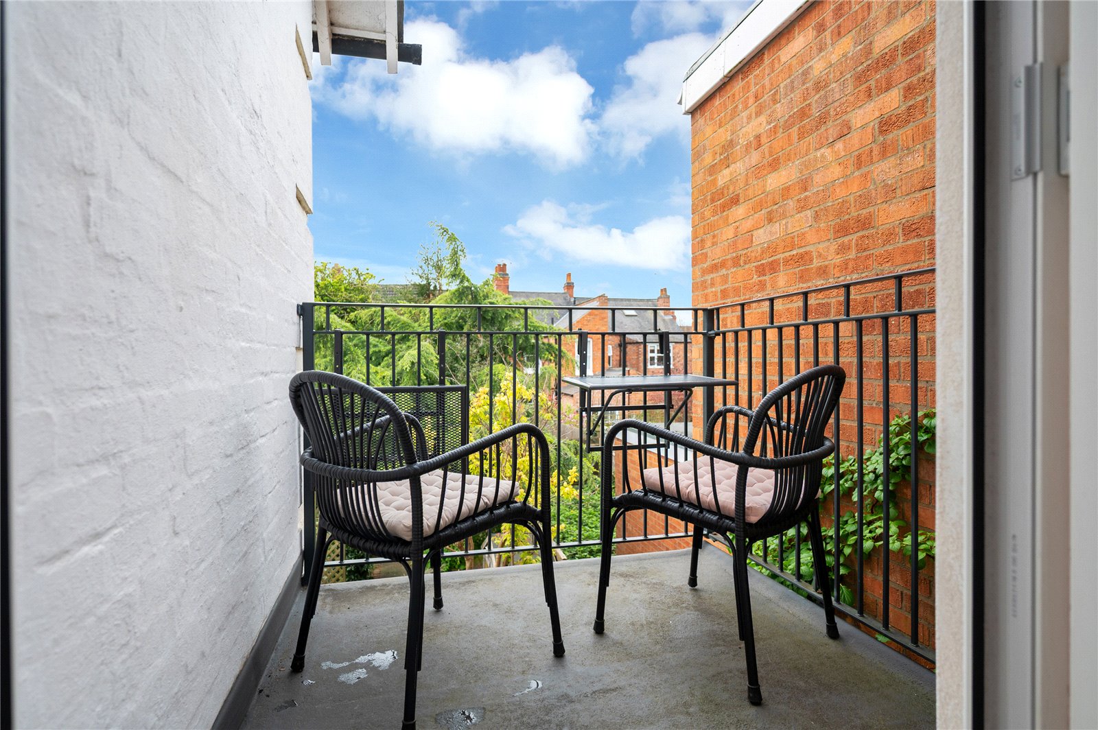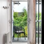 Upstairs, a wide landing leads to three well-proportioned double bedrooms. The principal bedroom is particularly generous and benefits from access to a private balcony overlooking the rear garden, offering an elevated outlook and space for seating. The remaining bedrooms are evenly sized and well-lit, providing flexible living. The family bathroom is spacious and fitted with a bath with shower over, WC, basin and a bidet.
