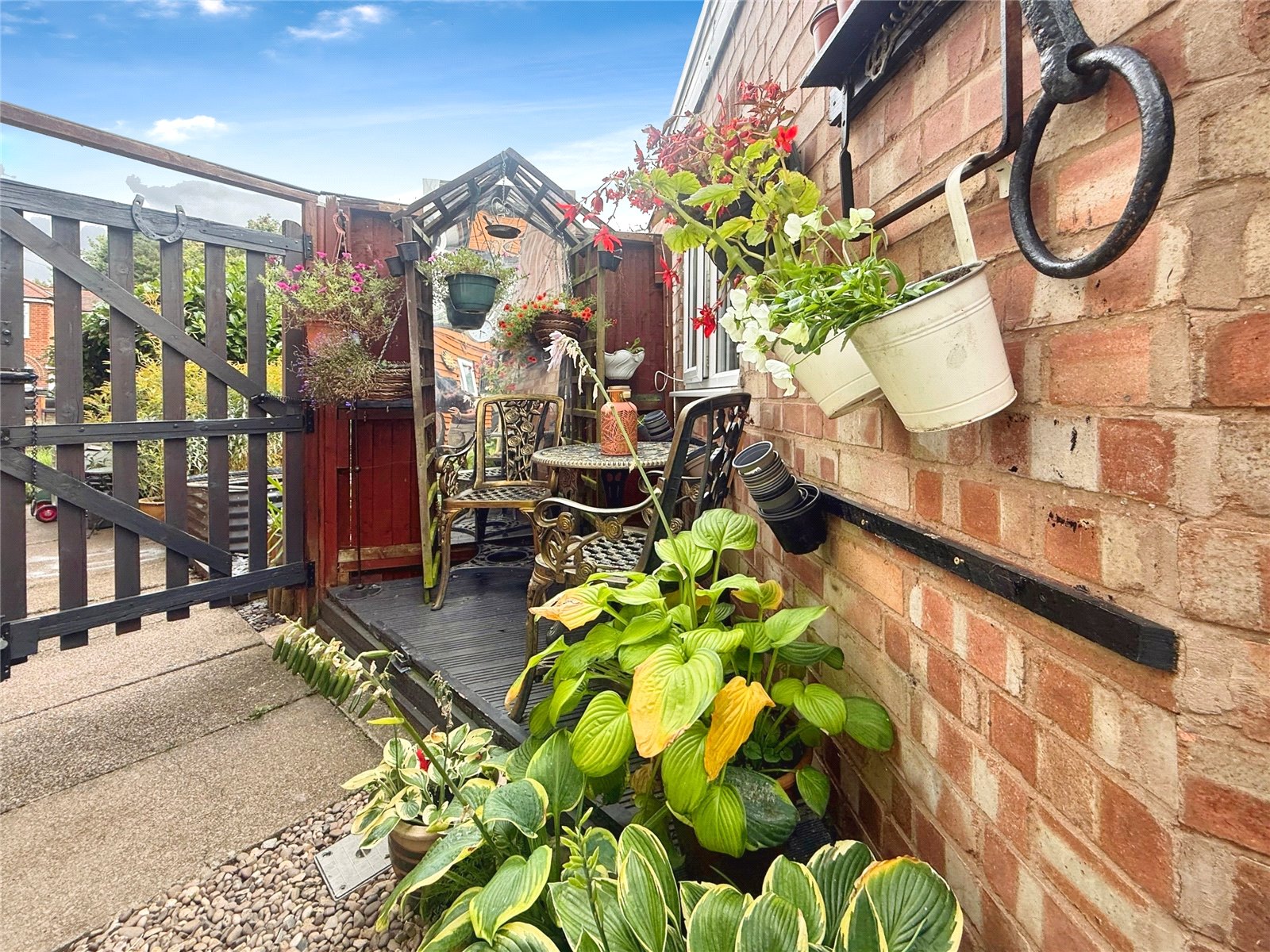 The outdoor space is equally appealing, with a private rear garden that provides the perfect setting for relaxation. Established planting, and paved areas make it versatile and easy to maintain, while an outbuilding offers further storage options. To the front, the large driveway provides parking for multiple vehicles and leads to a garage.