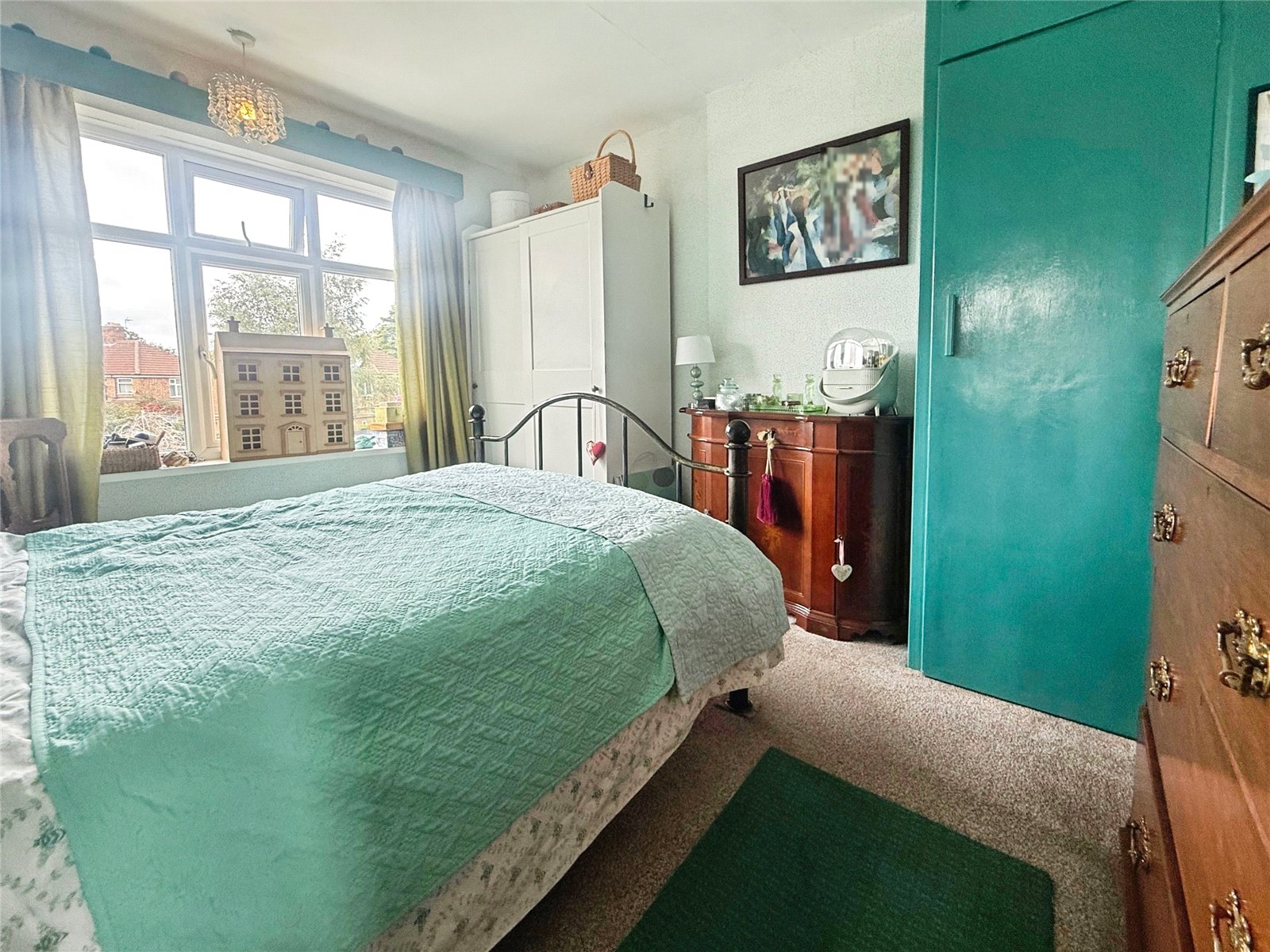Inside, the home retains a sense of character with a layout designed for everyday living. The front living room is light and inviting, centred around a feature fireplace and enhanced by a wide bay window that fills the space with natural light. A second reception room provides a dedicated dining area. The fitted kitchen is practical and well-appointed, with ample cupboard and worktop space, and direct access to the rear garden.