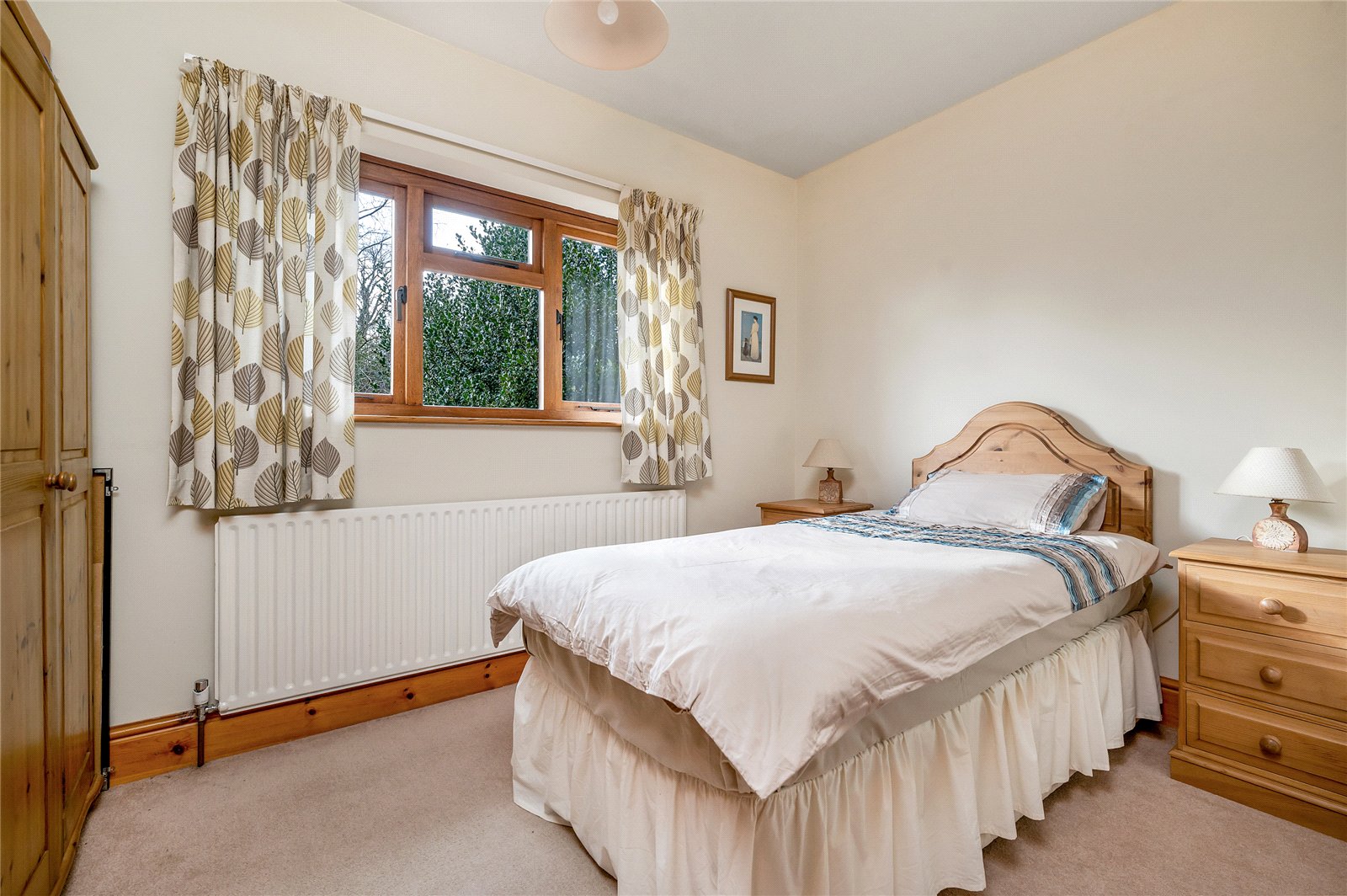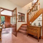 This wonderful double-fronted property is approached via a block paved path with mature trees, shrubs, lawns and pathways on either side, leading to a front door that opens into the superb red brick entrance porch, which has a solid hardwood front door, a vaulted ceiling with windows to the front that brightens the interior and a French farmhouse tiled floor. Off to the left is a door into the annexe and off its hallway is a double bedroom with a deep bay window that overlooks the pretty front garden. Adjacent is a shower room which has a recently fitted walk-in shower with a glass screen, a low-level WC and a pedestal wash hand basin with a tiled splashback and mirror above. At the end of the annexe’s hall is the living room with French windows at one end that lead into the garden while at the other end is a kitchenette complete with base and drawer units, with work surfaces and a double row of tiles above, and a sink with a mixer tap. Central to the room is a gas coal-effect fire sitting on a raised tiled hearth with a wood surround and mantel above.