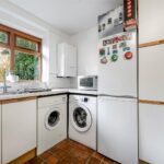 Also leading off the inner hall is the wonderfully grand and sunny drawing room with a deep bay window, which overlooks the south-facing front garden. A particular feature of this room is the impressive cast iron fireplace sitting on a tiled hearth with a decorative backplate and pretty tiling on either side, a with a carved wood surround and mantel above. Within the alcoves on either side of the fireplace are two inset shelves, perfect for displaying statues or other furnishings. Adjacent to the drawing room is the downstairs cloakroom with a low-level WC and wall-mounted wash hand basin.