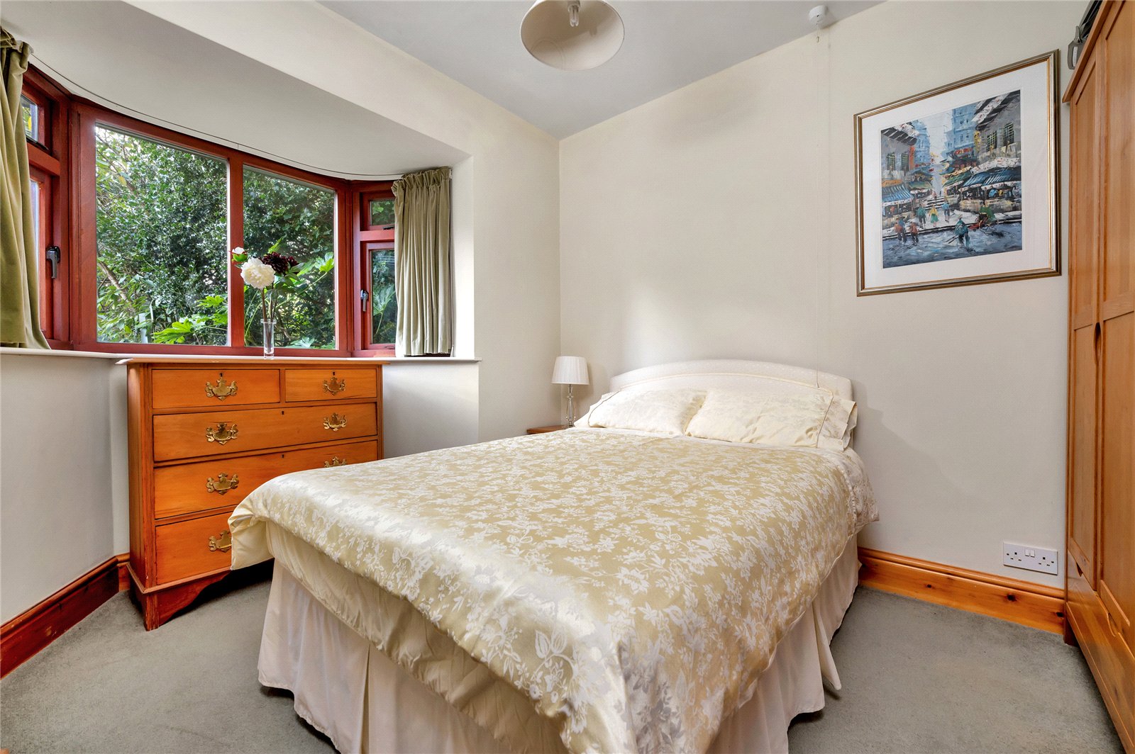 A magnificent feature of this property is its gardens. At the front, which is separated from the road by a private, no-through service road, is a paved pathway with south-facing gardens on either side filled with an abundance of mature shrubs, hedges and trees. To the right of the property is a paved driveway providing off-street parking which leads to the double garage with an up-and-over door. To the rear of the property is the spectacular landscaped garden that offers plenty of privacy and seclusion. Immediately from the house is a large block-paved terrace, perfect for entertaining and family gatherings with lots of space for tables and chairs. Bound by mature hedges and trees, there is a path on one side that leads to lawned areas and beyond is a plethora of well-established trees, hedges, shrubs and borders a wonderful haven for wildlife and plenty of space for children to run and enjoy the outdoors.
