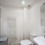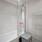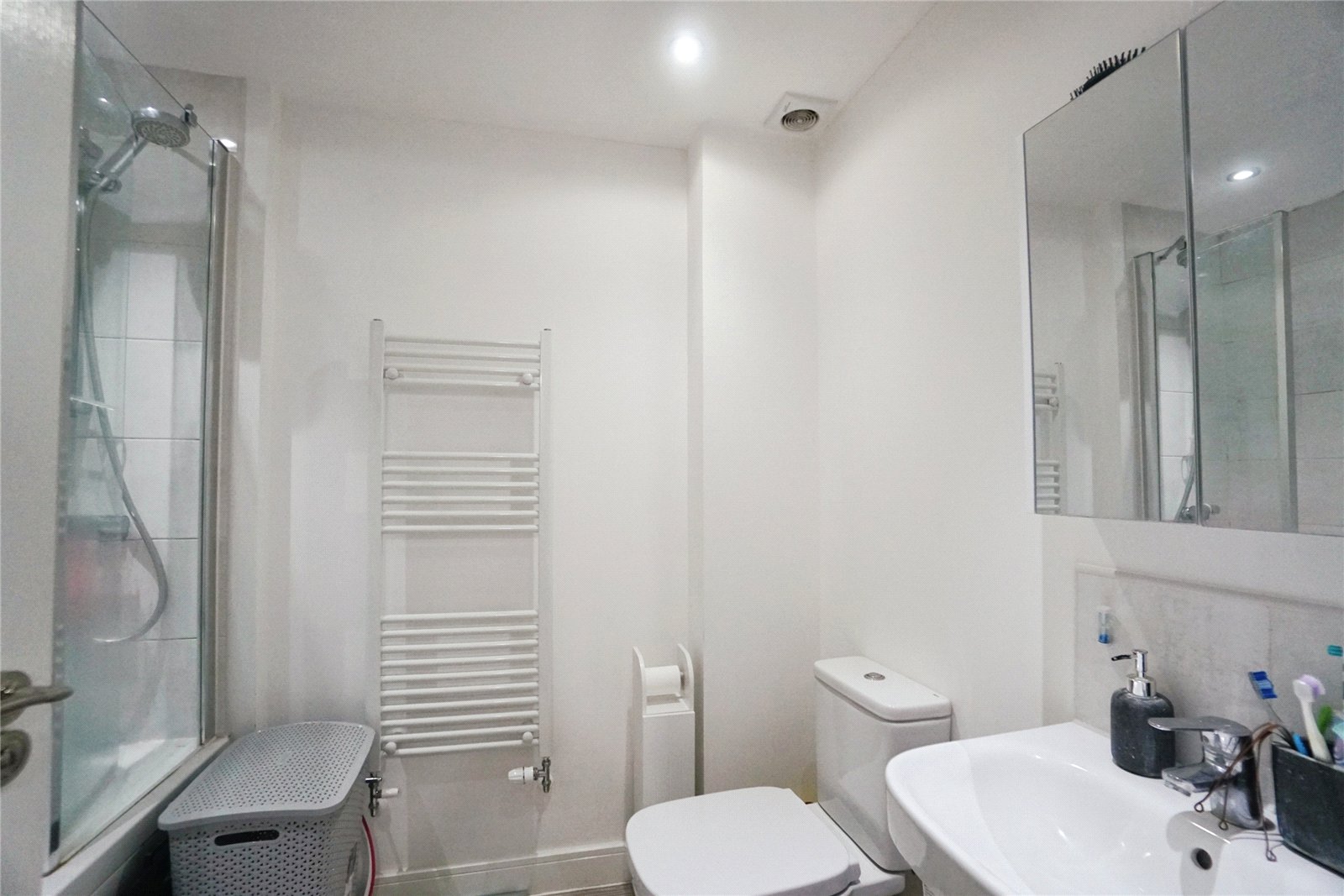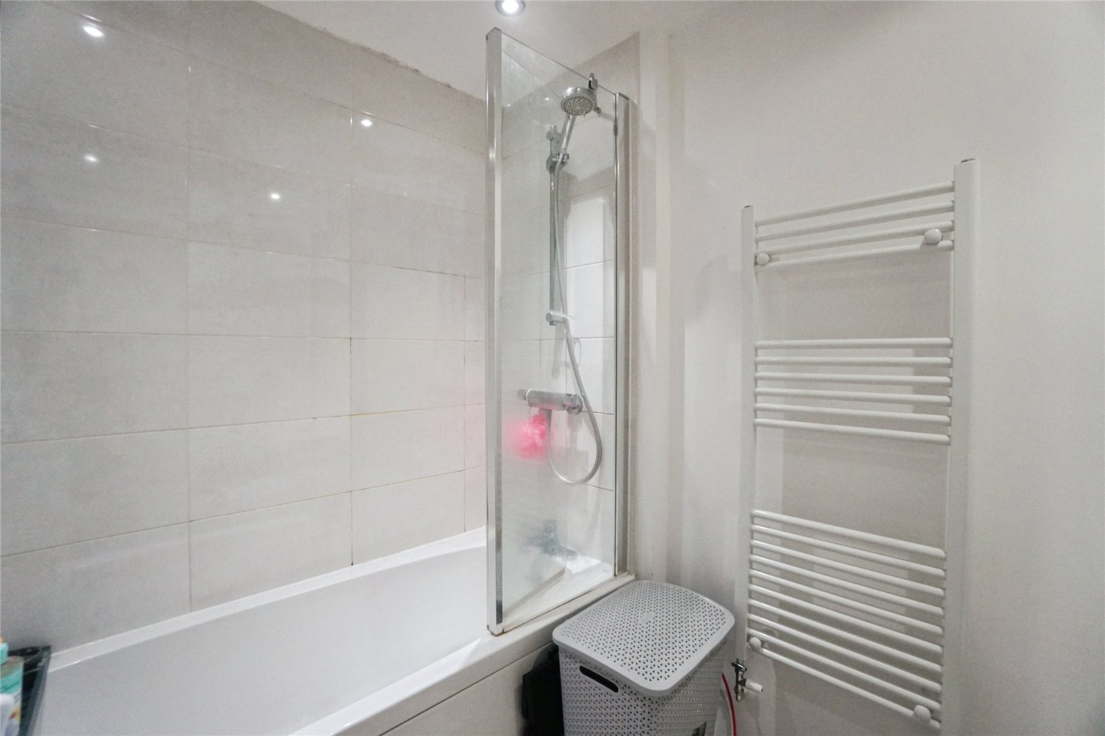 The bathroom is modern and stylish, fitted with a panelled bath and overhead shower, glass screen, wash basin and WC. Contemporary tiling and a chrome towel radiator complete the room, creating a clean, well-kept finish.