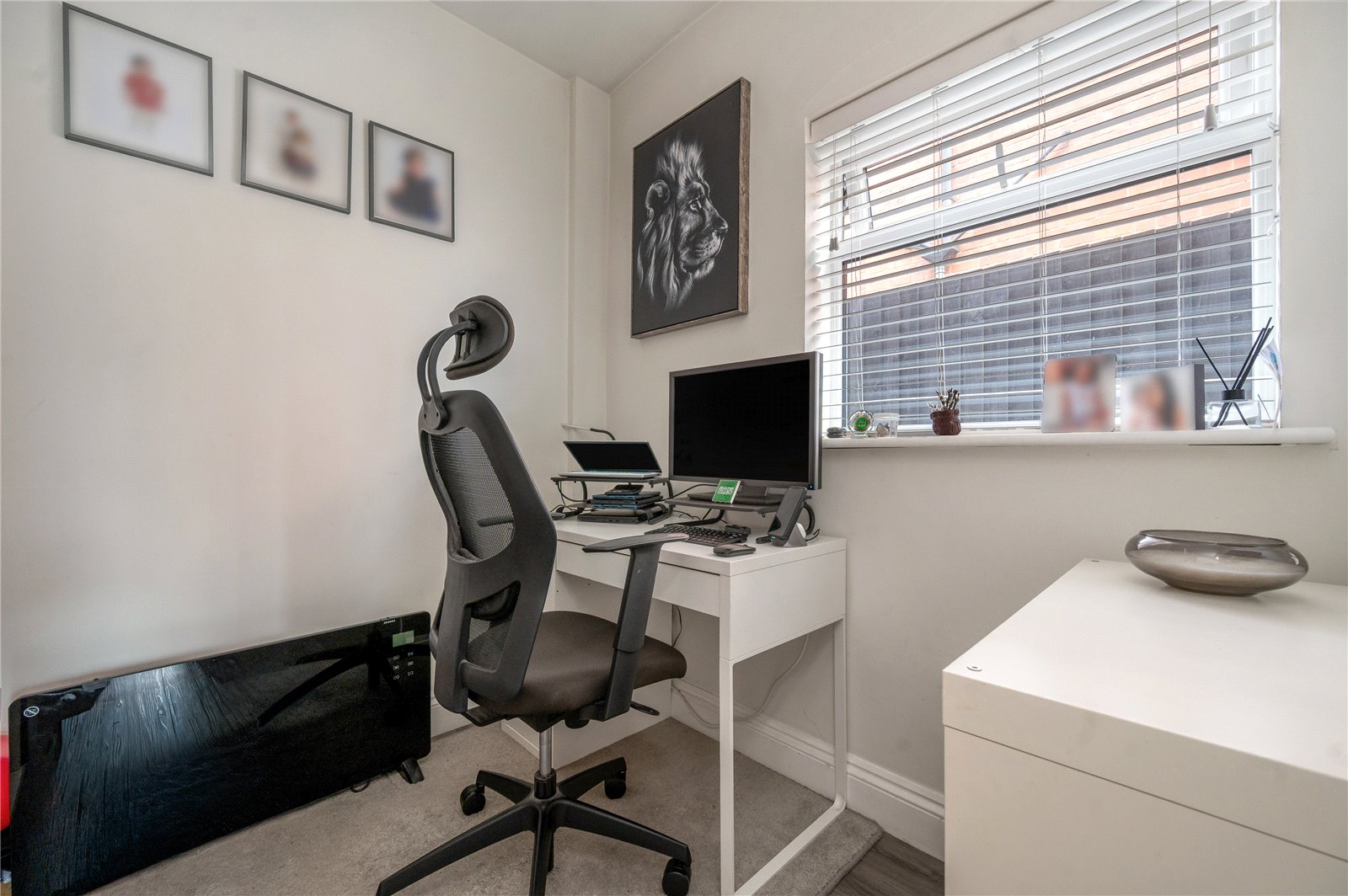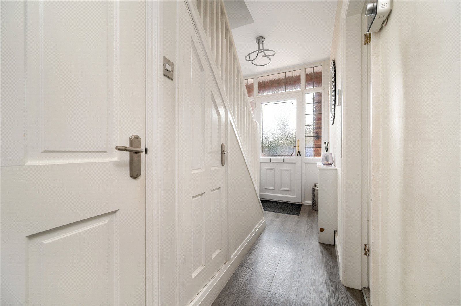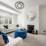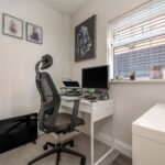 Entering the property, a central hallway provides access to a front reception room, a study and a conveniently positioned downstairs WC. The principal reception room is set to the front, centred around a bay window that draws in excellent natural light and creates a bright, inviting space. The study sits just off the main circulation, offering a more private and considered area, ideal for home working.