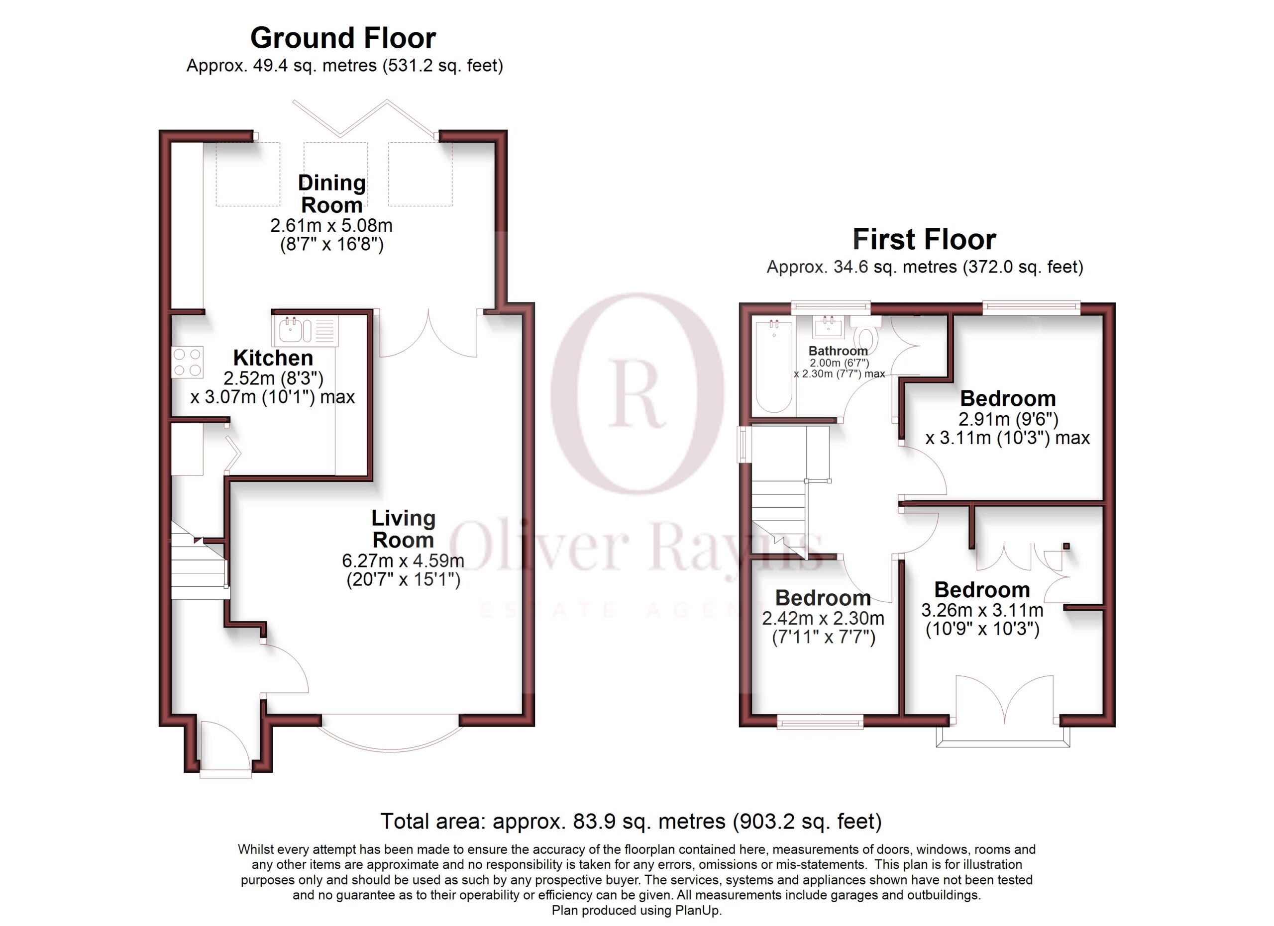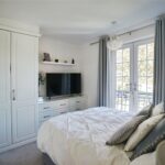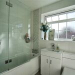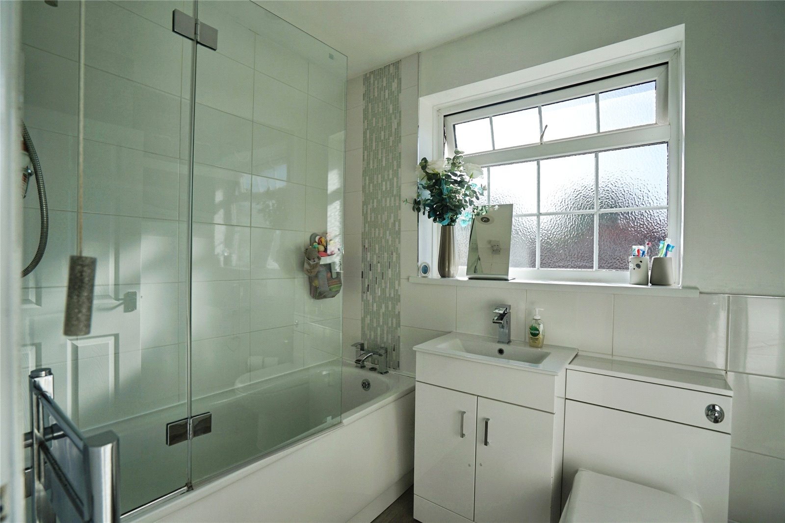 Upstairs, the home continues to impress with three well-proportioned bedrooms. The main bedroom benefits from built-in storage and French doors with a Juliet balcony, creating a bright and airy feel. The second bedroom is a generous double, and the third makes an ideal nursery, guest room or home office. The modern family bathroom is finished to a high standard with a contemporary suite, bath with shower over, and stylish tiling.